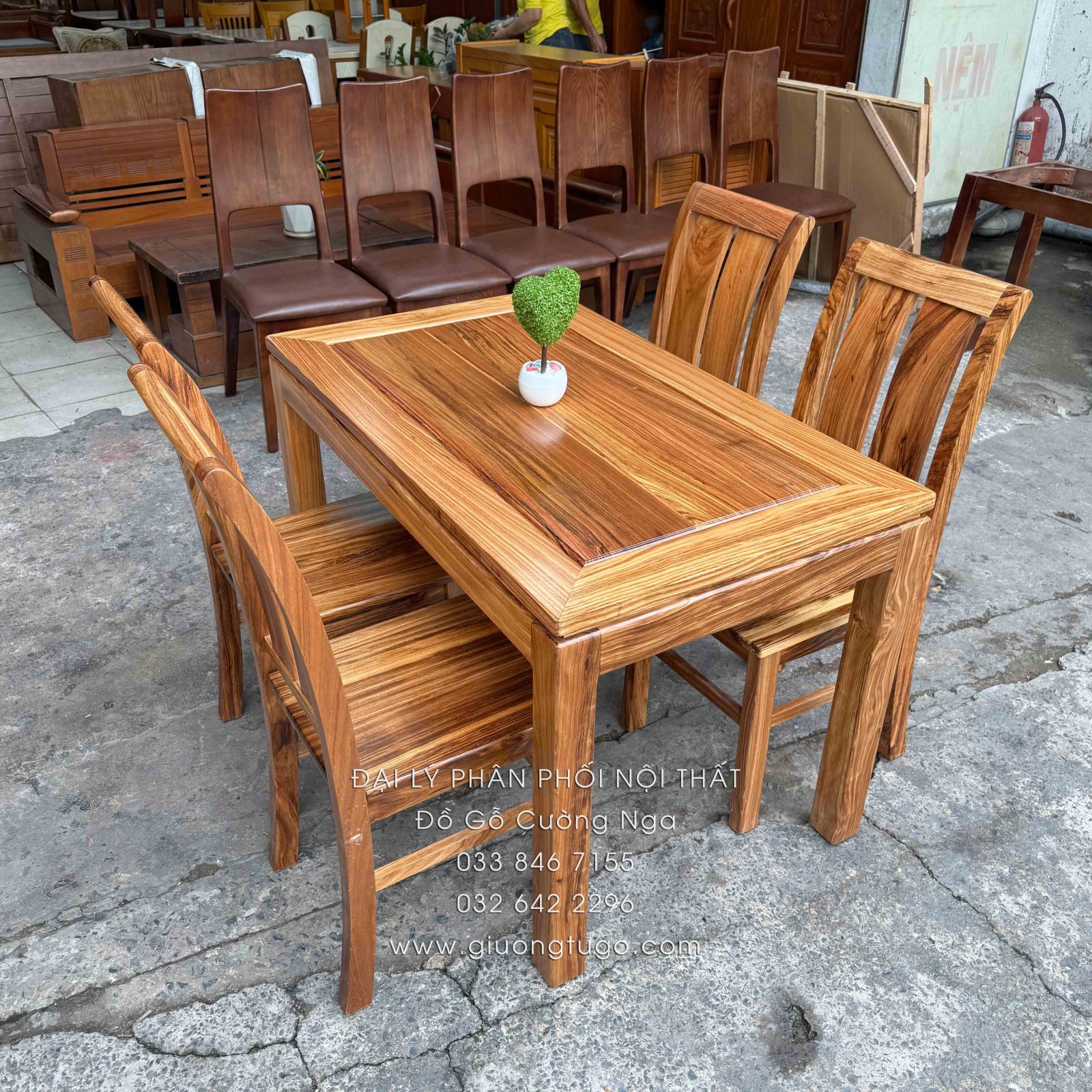 Bàn Ăn Gỗ Hương Xám 4 Ghế Lưng Tựa Cong