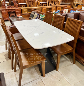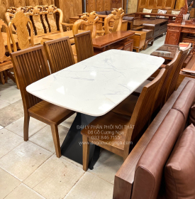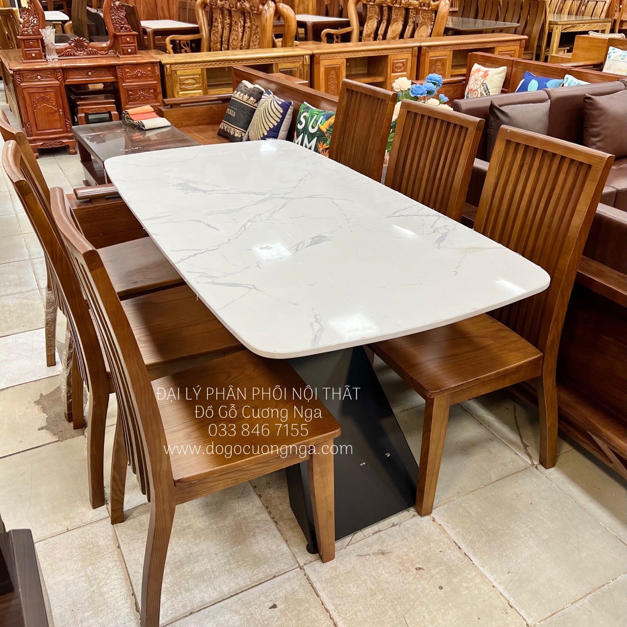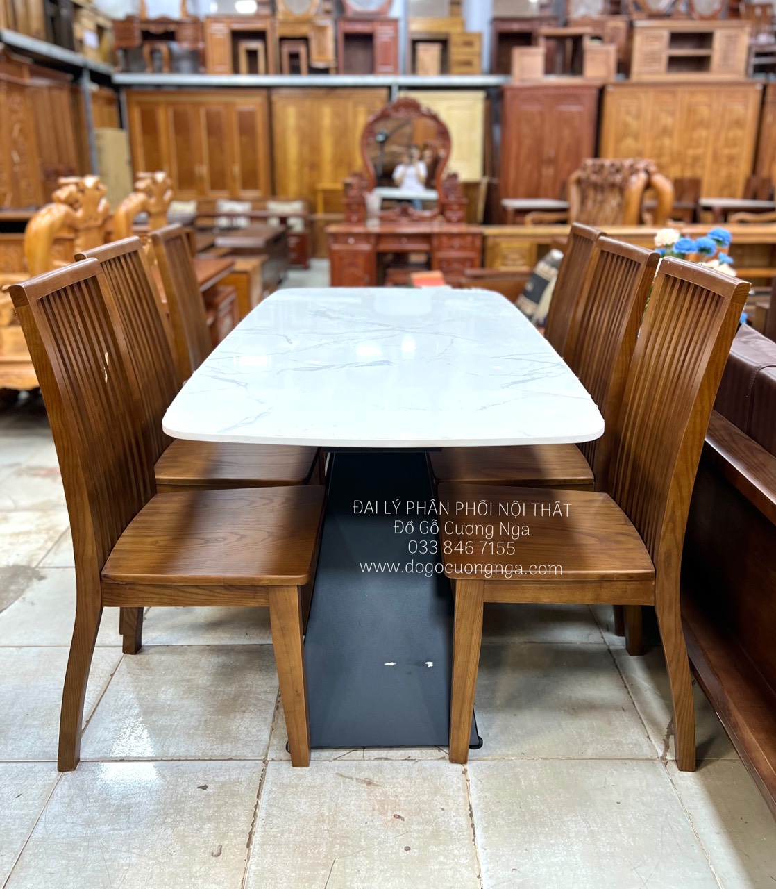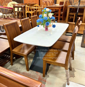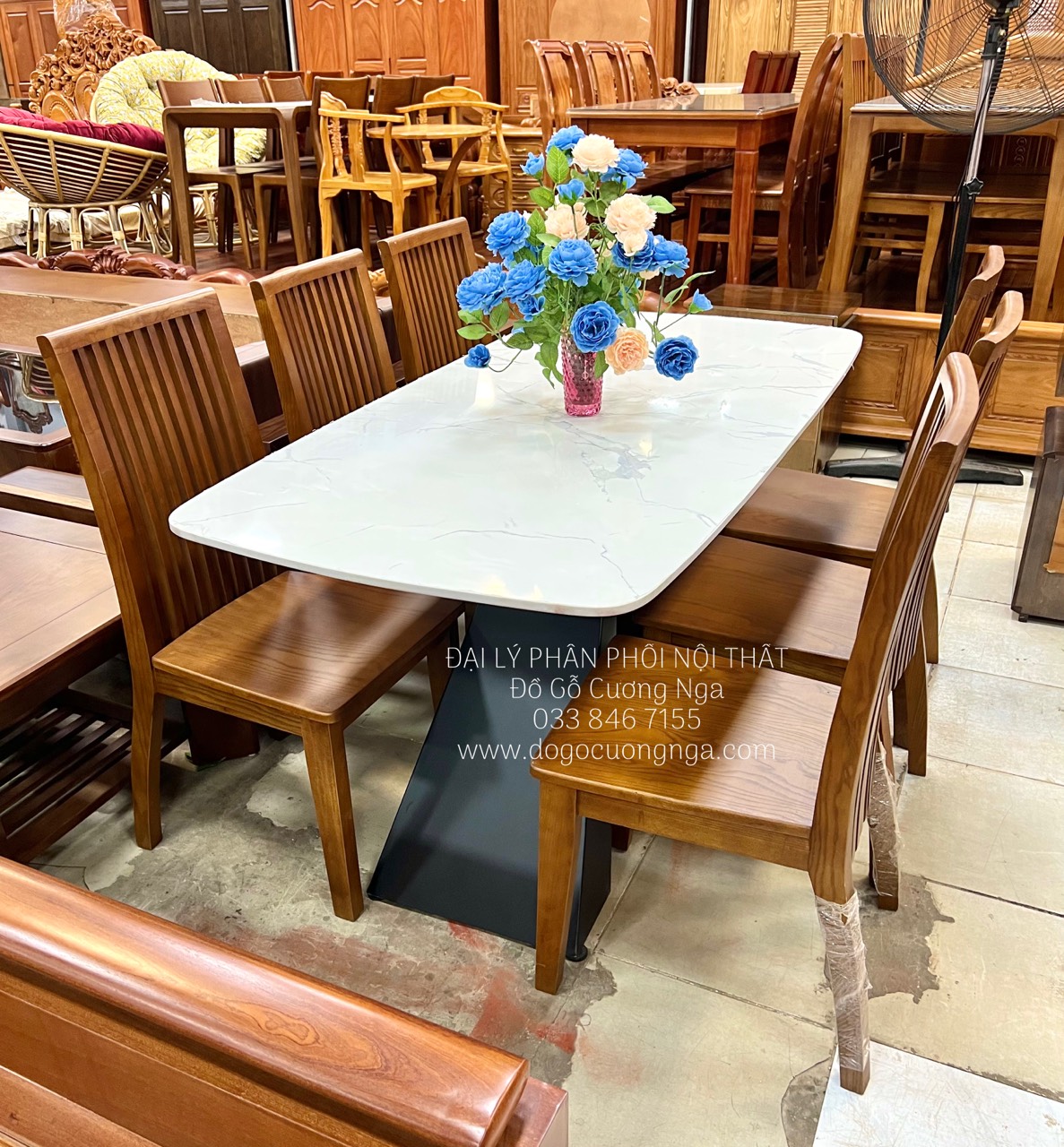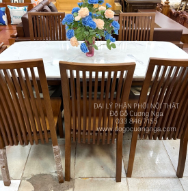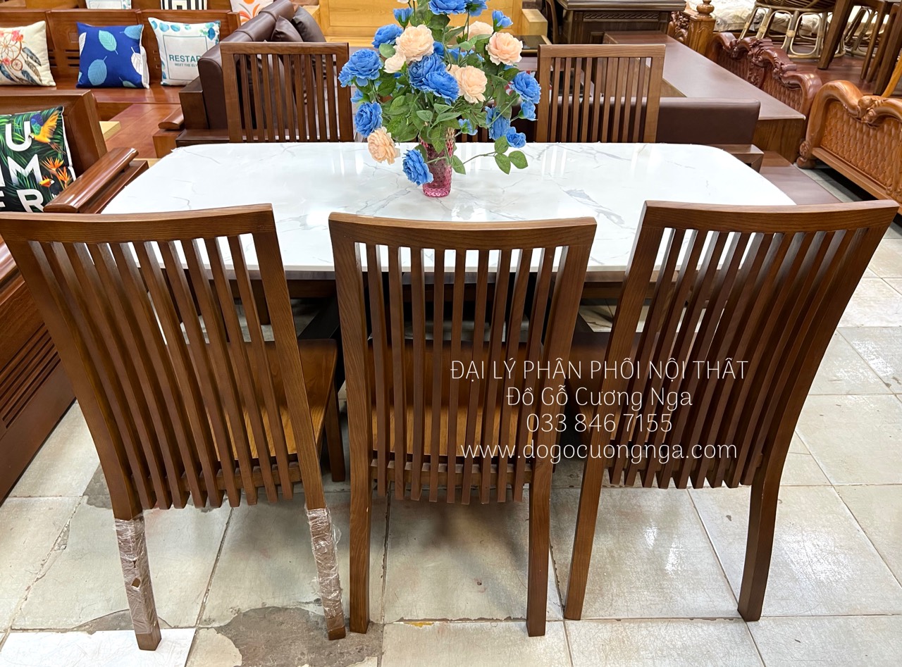 Bộ bàn ăn 6 ghế gỗ Sồi Nga mặt đá