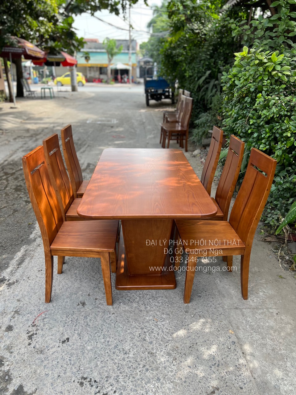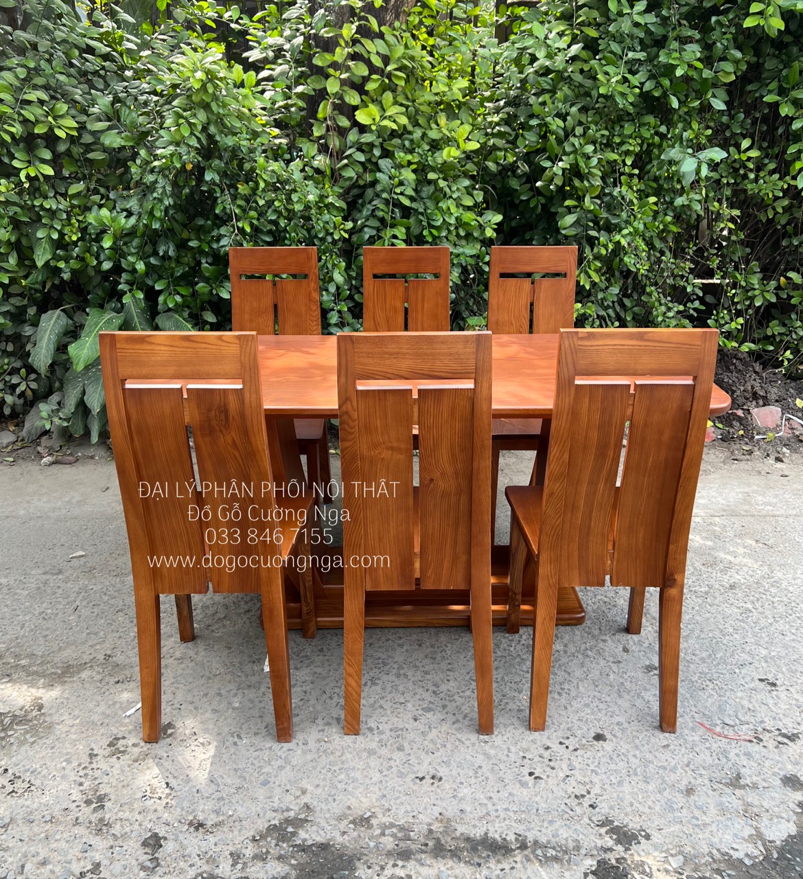 Bàn ăn gỗ sồi nga màu óc chó 6 ghế