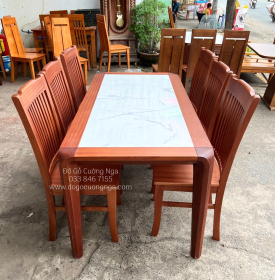 Bộ bàn ăn 6 ghế gỗ xoan đào mặt đá