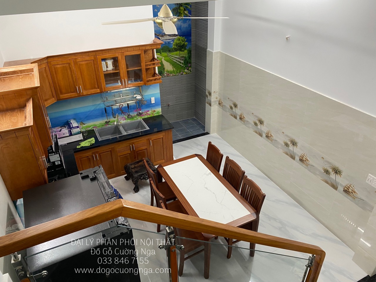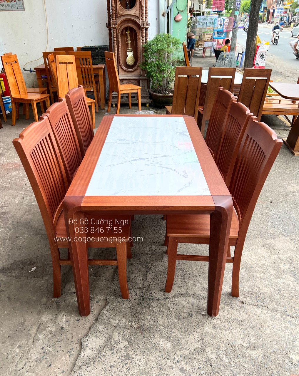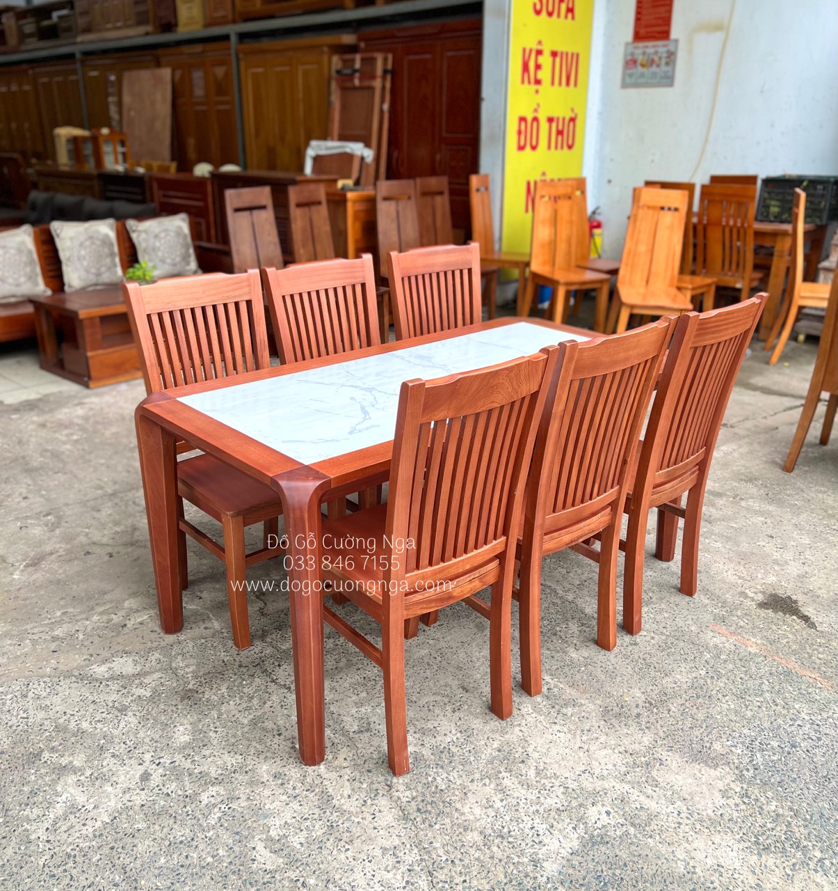 Bàn ăn gỗ xoan đào mặt đá 6 ghế