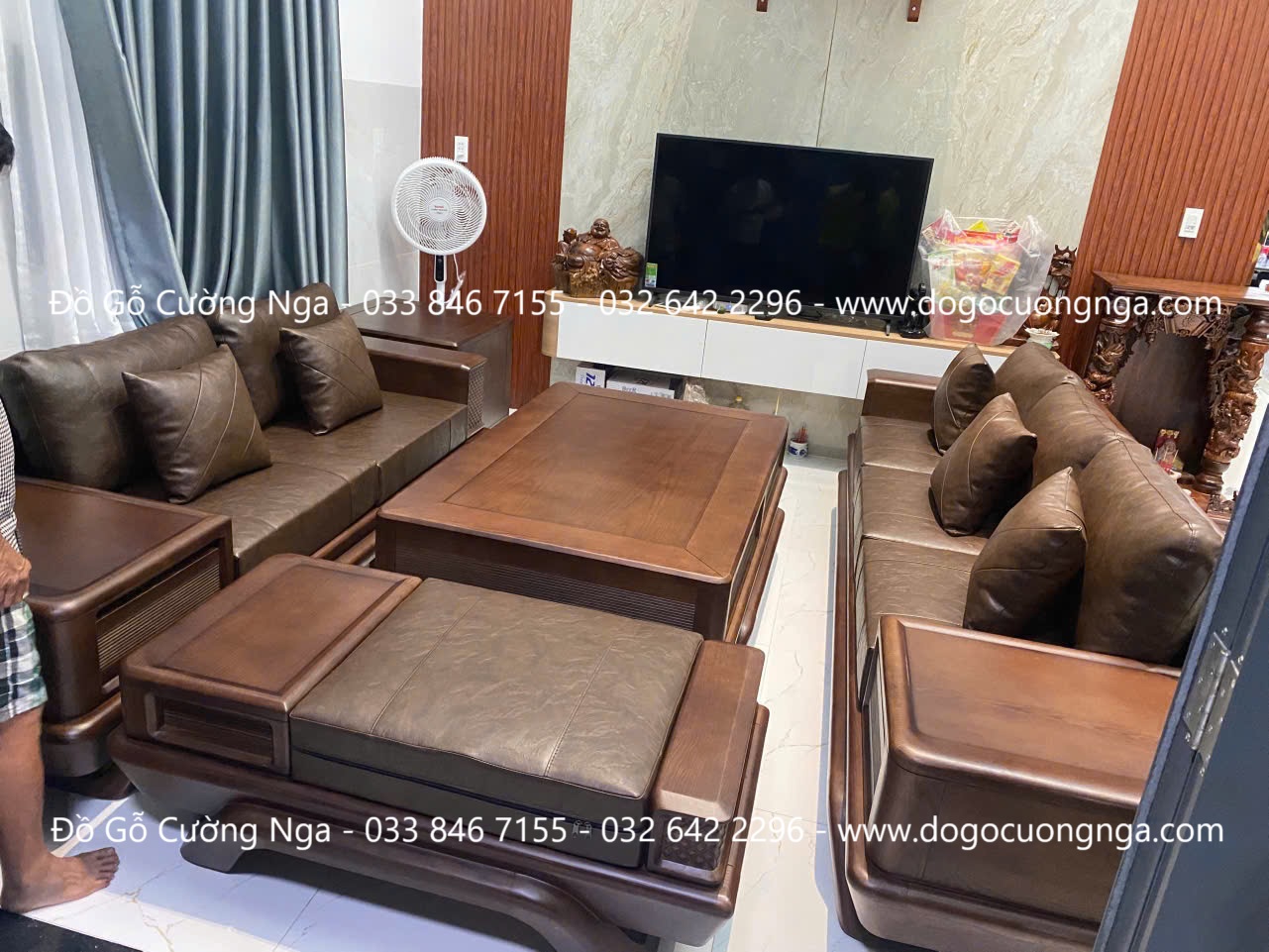 Bàn Ghế Phòng Khách Gỗ Sồi Nga 2 Văng Chân Thuyền Đại