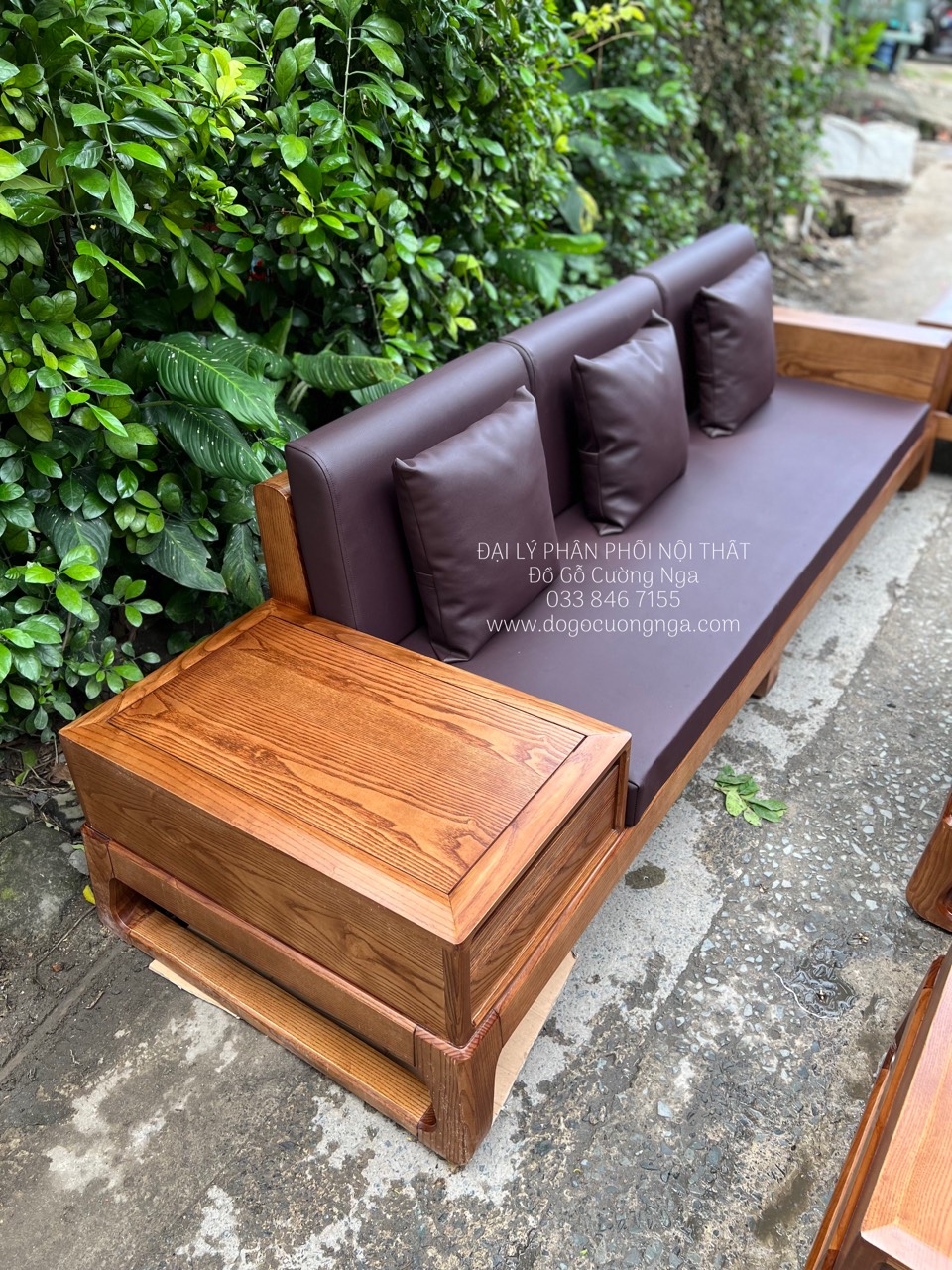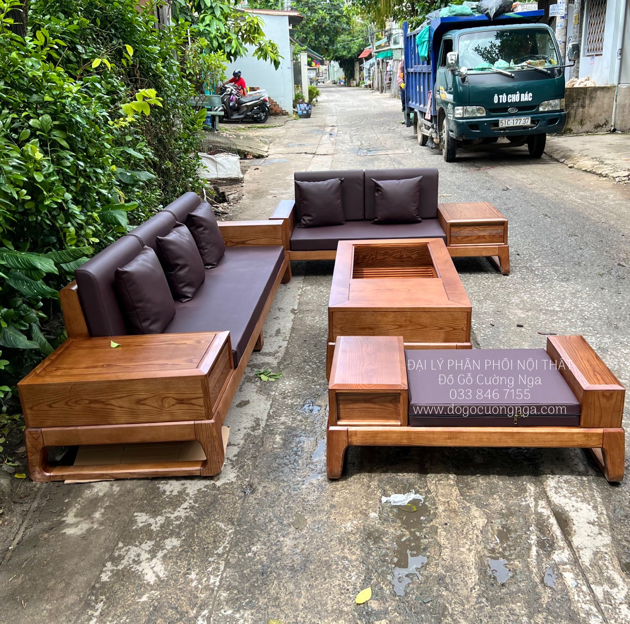 Bàn Ghế Sofa Gỗ Sồi Nga 2 Văng Choãi Hiện Đại