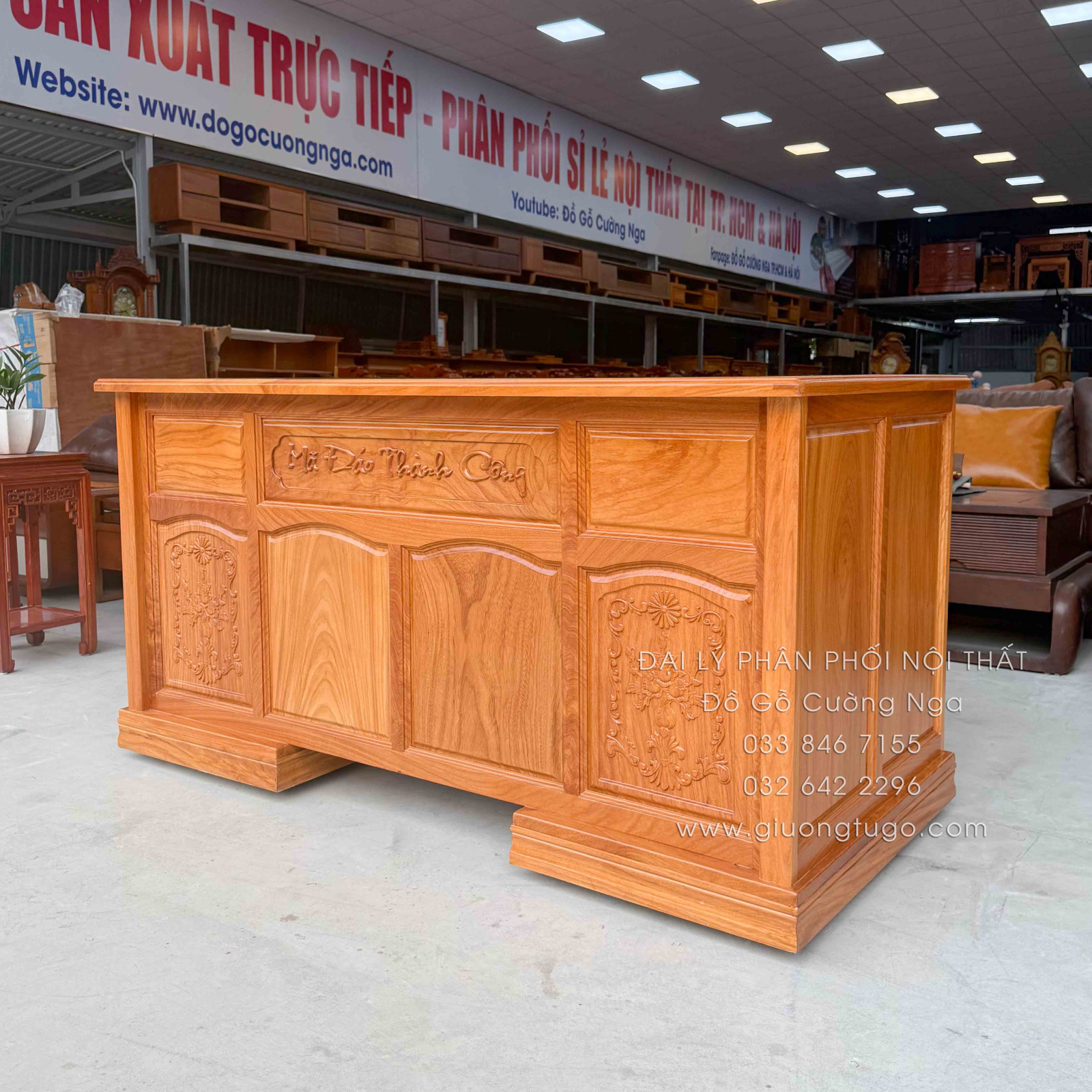 Thông tin chi tiết Bàn Làm Việc Giám Đốc Gỗ Gõ Đỏ 1m6 Chạm Mã Đáo Thành Công