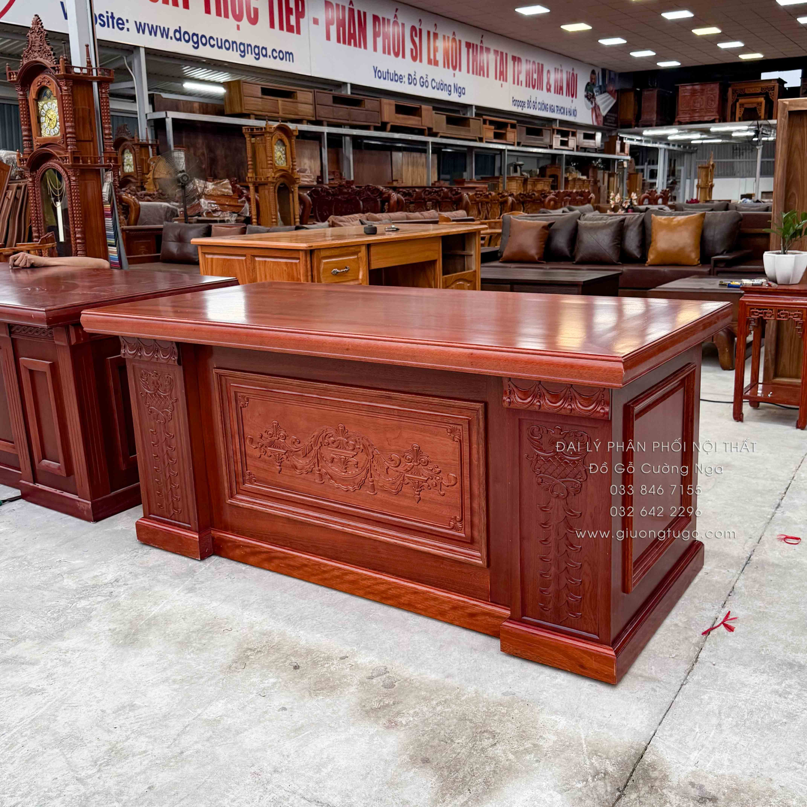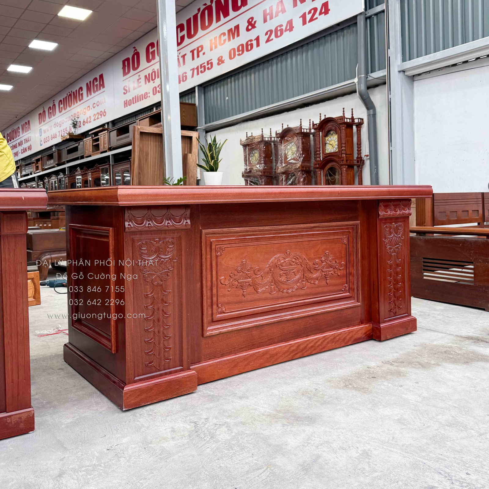 Bàn Làm Việc Giám Đốc Gỗ Xoan Đào 1m67 - Mặt Vuông Chạm
