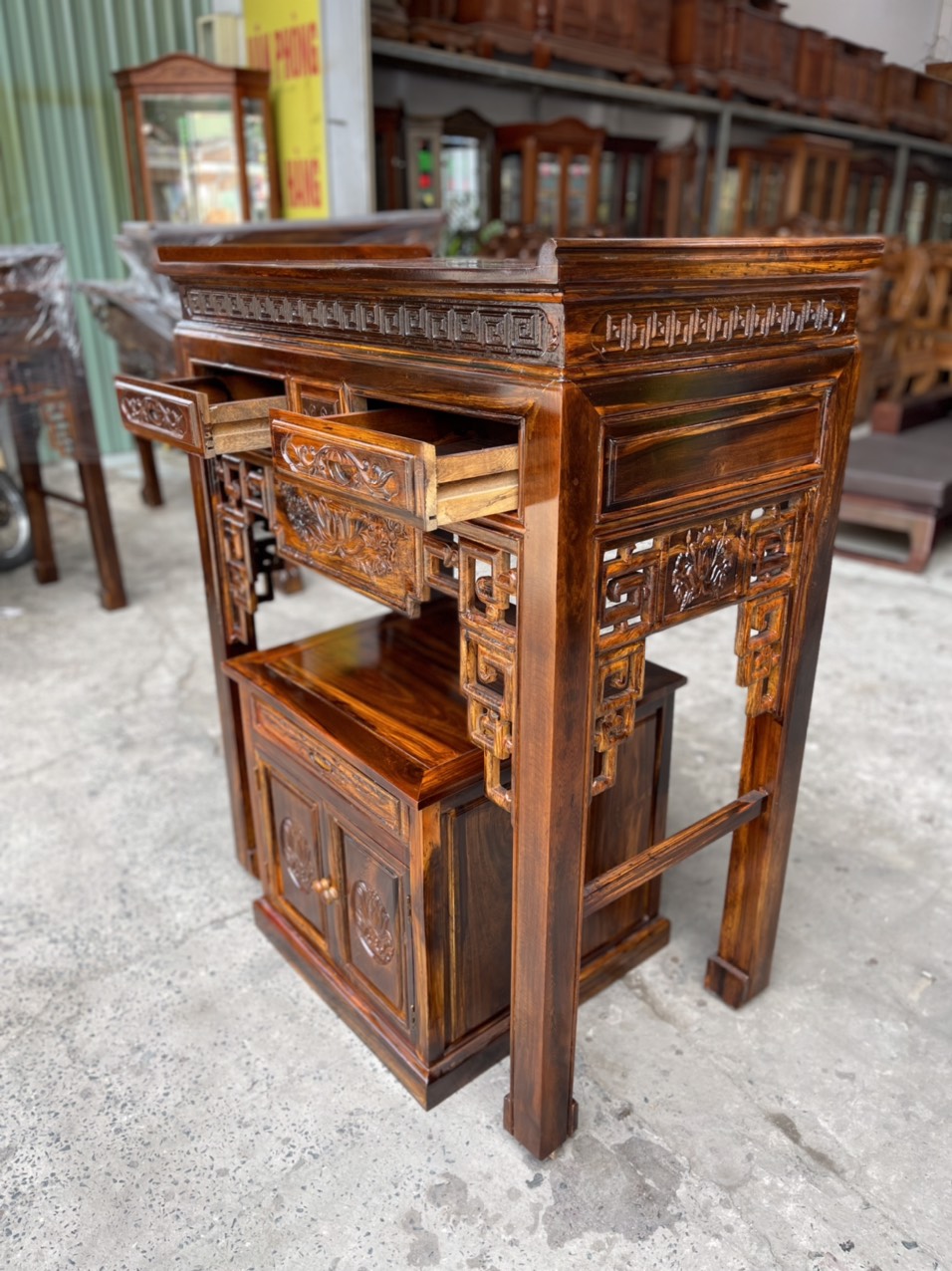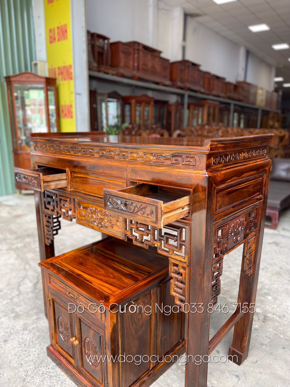Bàn thờ gia tiên gỗ muồng - bàn thờ cặp