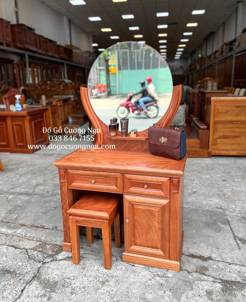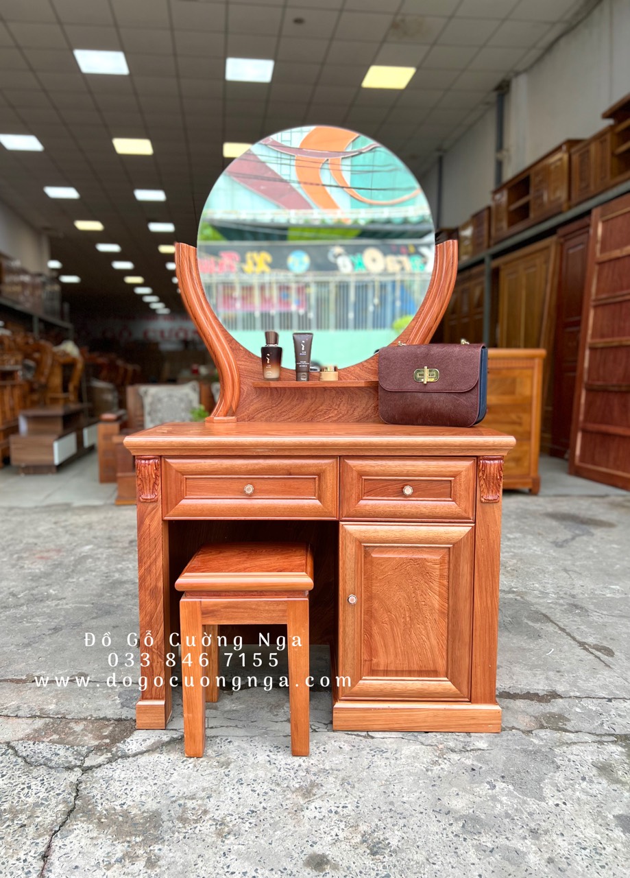Bàn Trang Điểm Gỗ Hương Đá Gương Tròn Cao Cấp TĐ 014