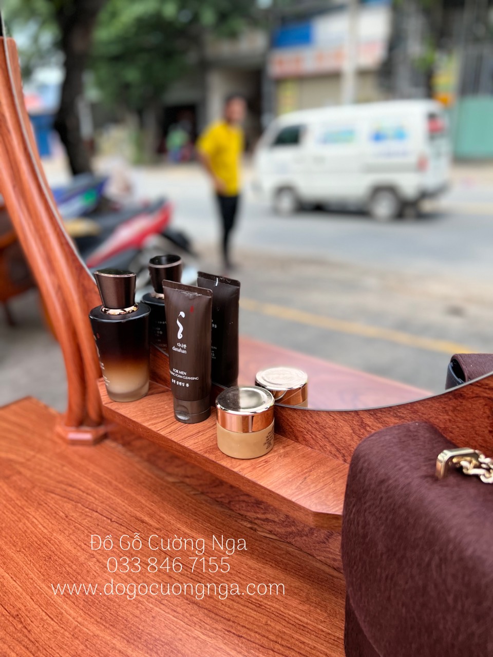 Bàn trang điểm là món đồ nội thất không chỉ hỗ trợ quá trình làm đẹp của chị em. Mà còn góp phần tạo nên giá trị thẩm mỹ cho phòng ngủ. Tại Nội thất Đồ Gỗ Cao Cấp Cường Nga , bàn trang điểm gỗ hương là sản phẩm luôn nằm ở vị trí khác biệt và thu hút sự quan tâm yêu thích của rất nhiều người. Sản phẩm với vẻ đẹp quyến rũ và thiết kế độc đáo, đem đến những phút giây trải nghiệm sử dụng tuyệt vời, tiện lợi nhất.