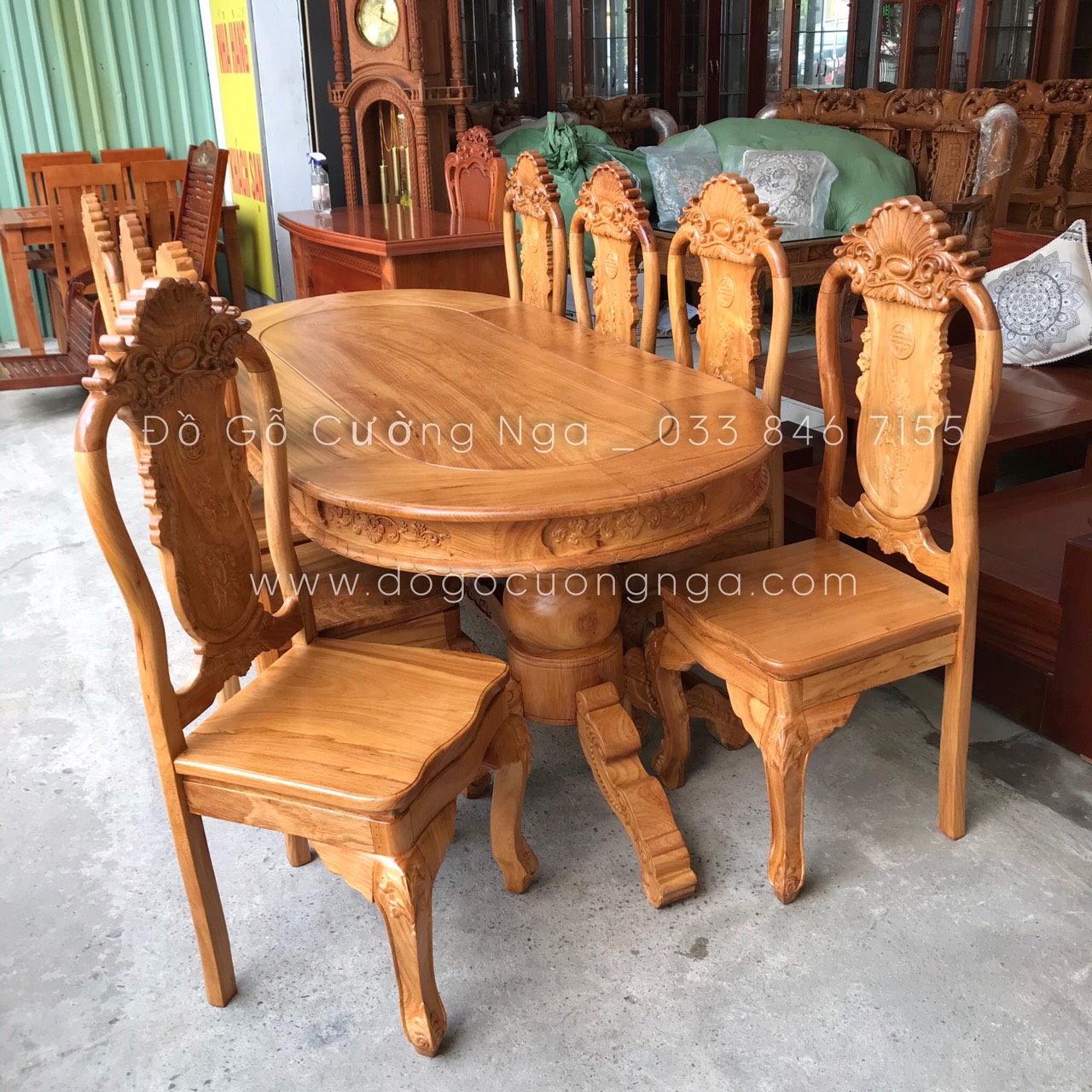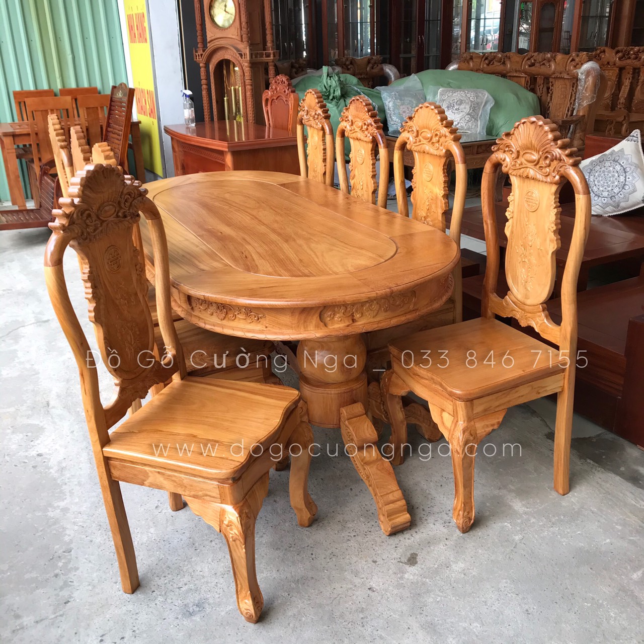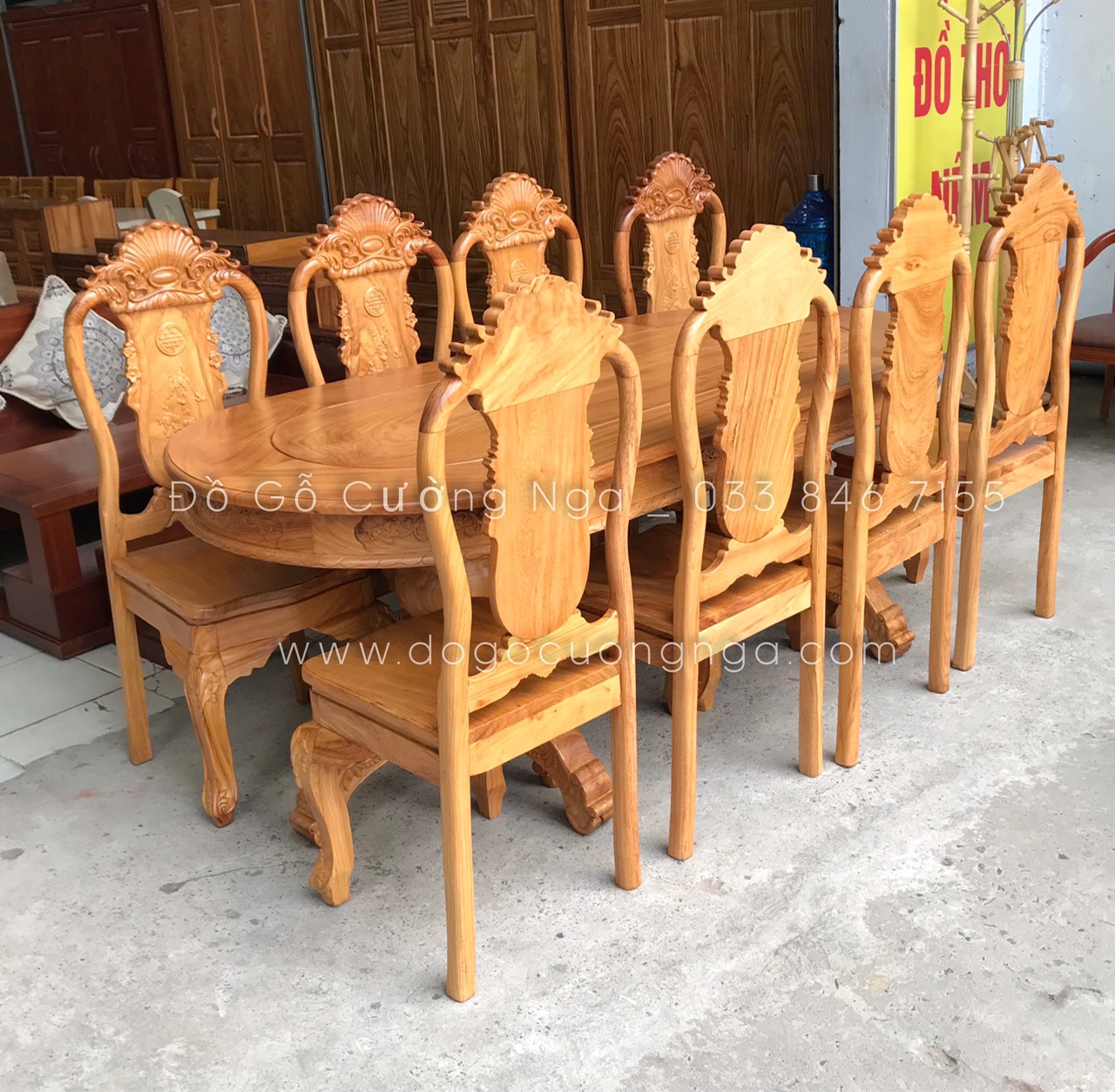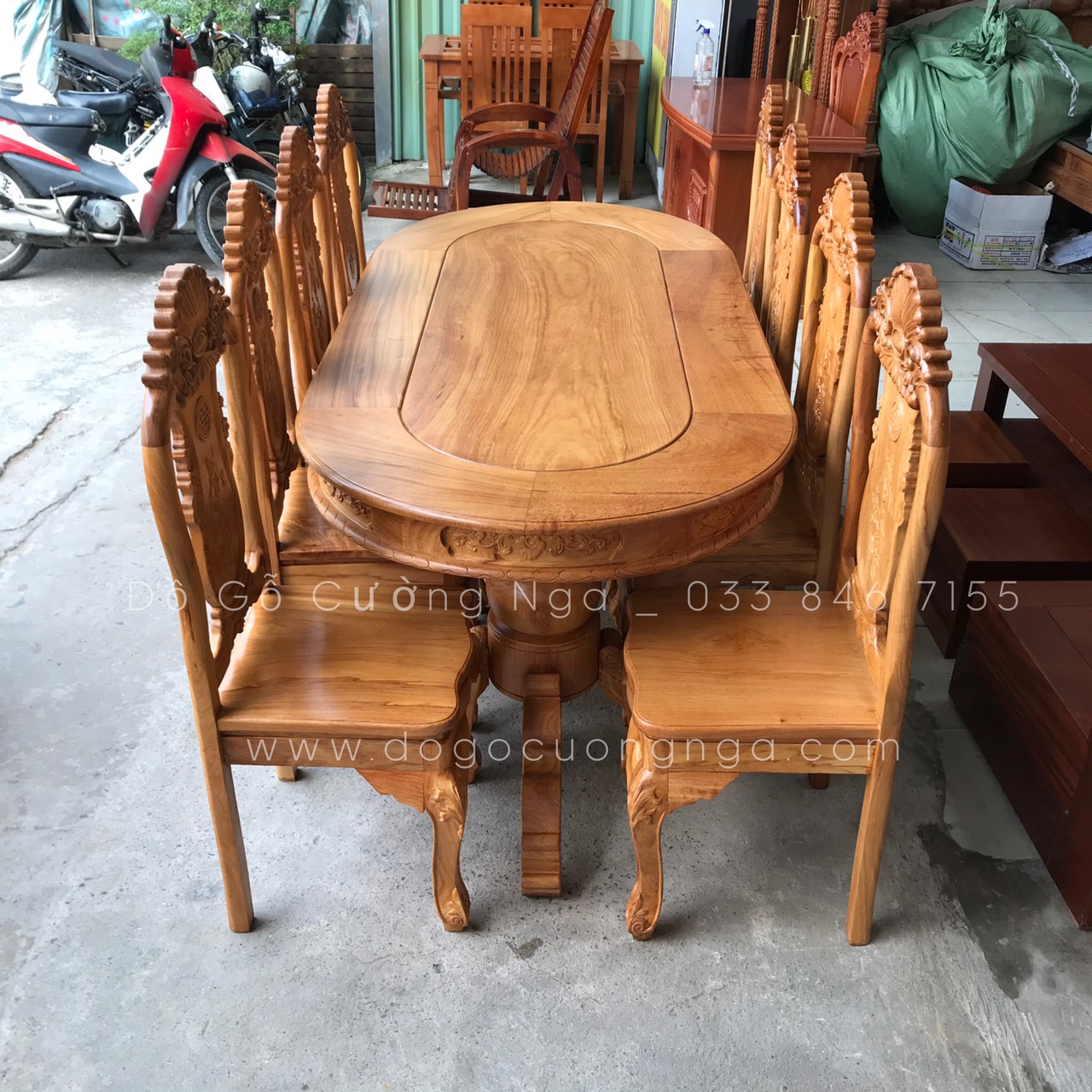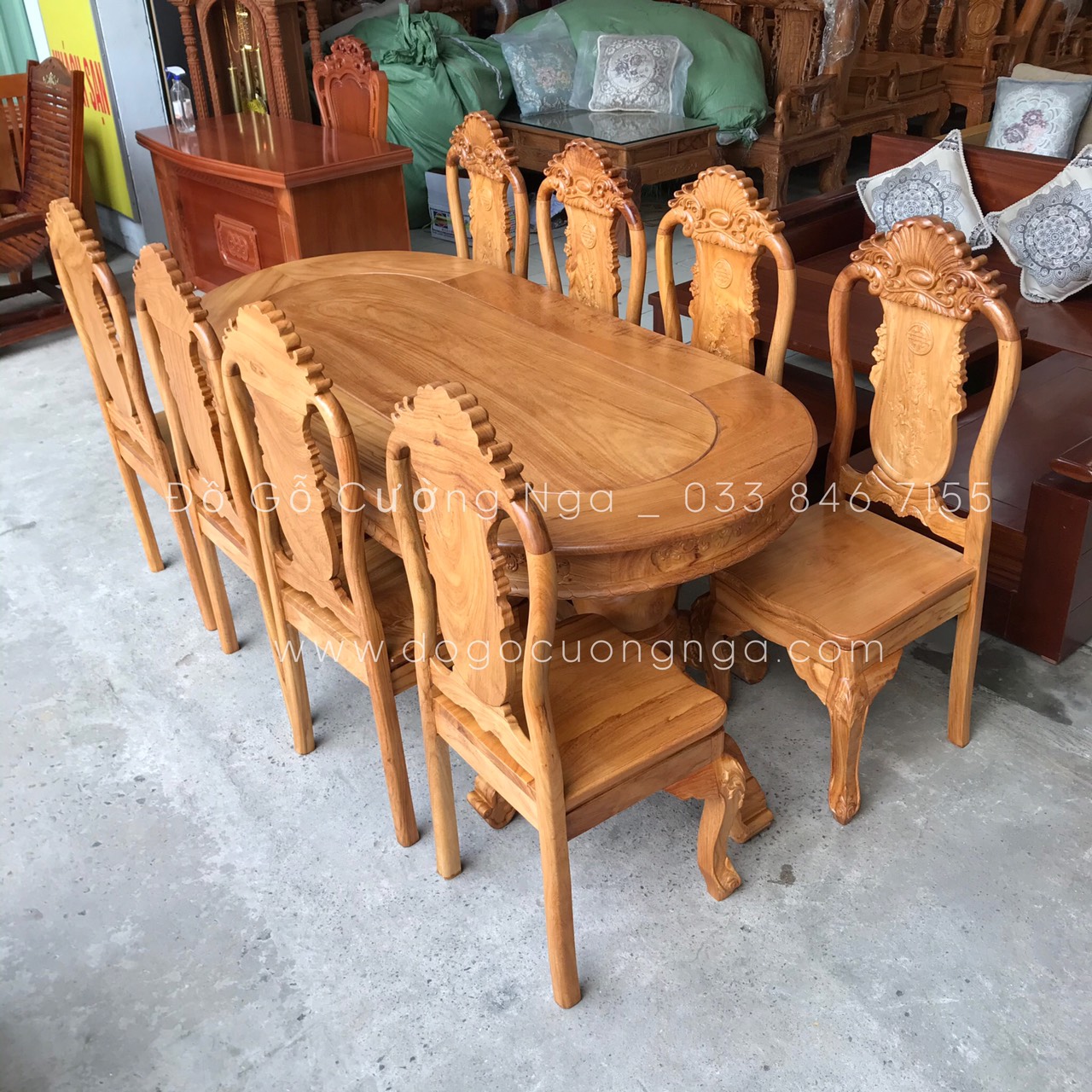 Bộ Bàn Ăn Gỗ Gõ Đỏ Cao Cấp 8 Ghế Mẫu Ovan Đẹp Đẳng Cấp