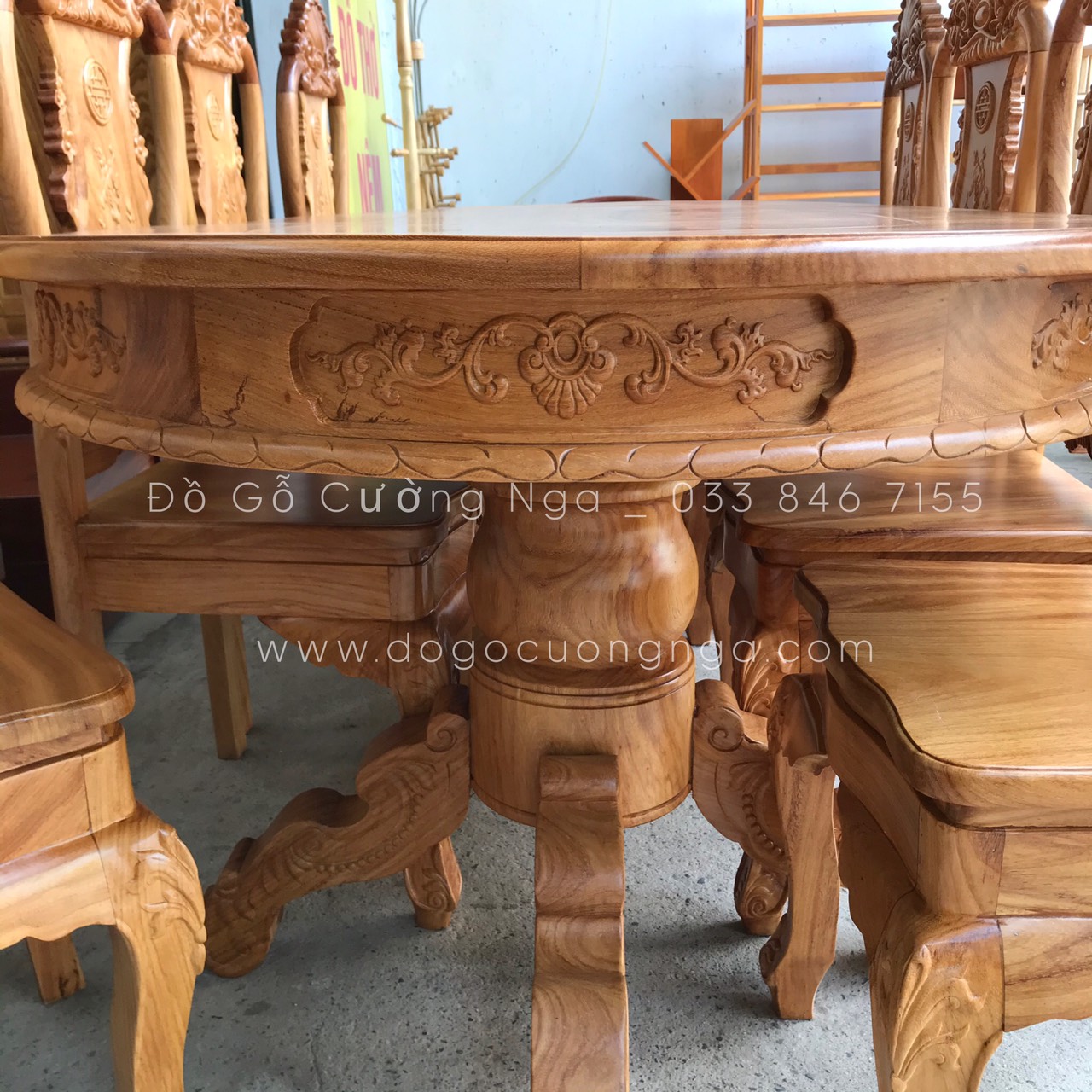 Chi tiết bàn ghế ăn gỗ gõ đỏ 8 ghế