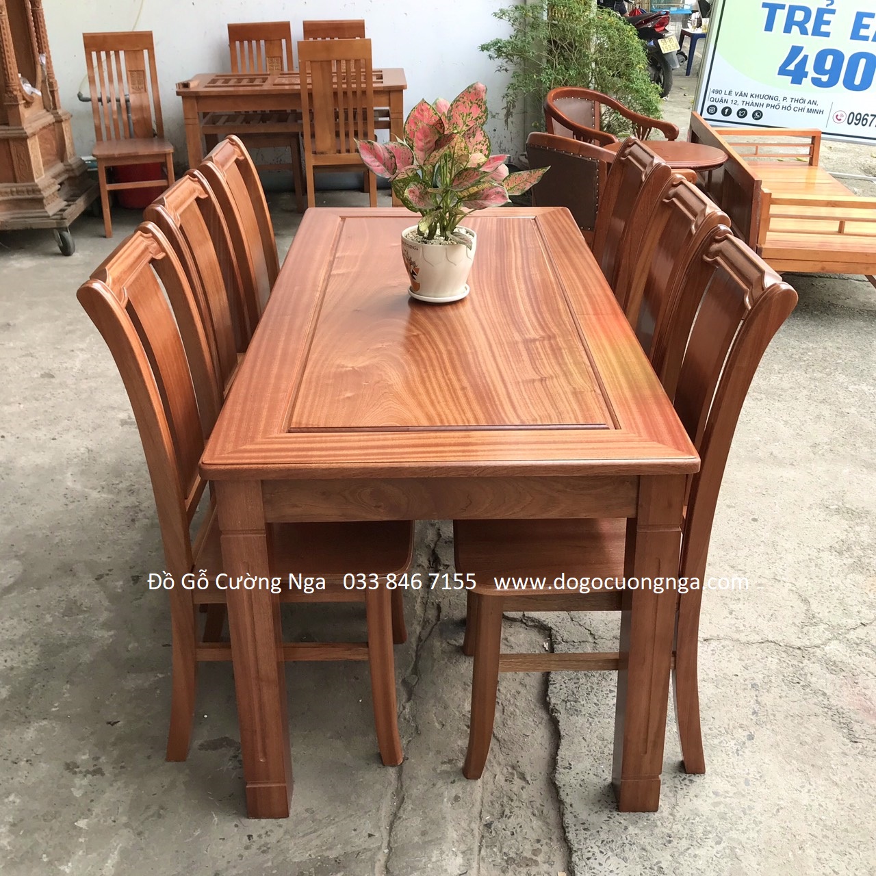 Bàn ăn gỗ xoan đào 6 ghế - mặt liền 6 ghế