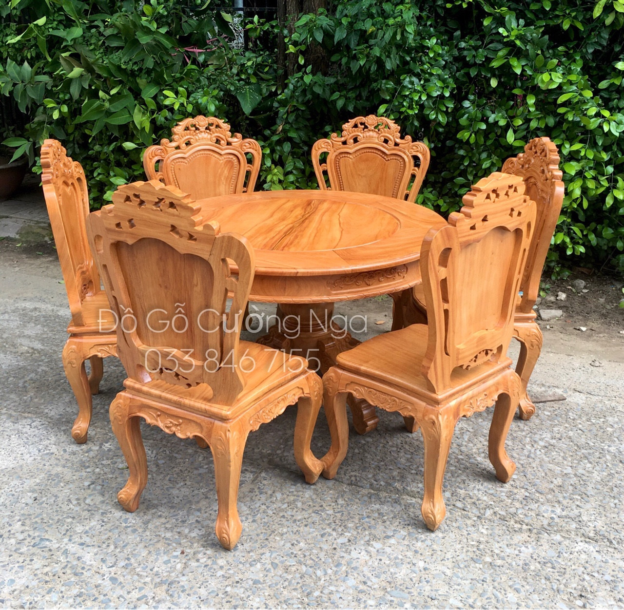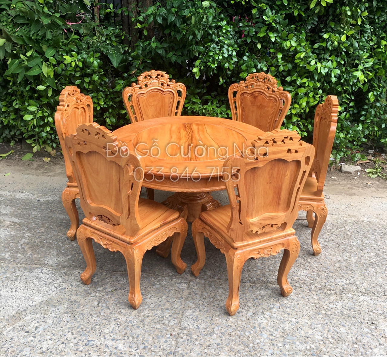 Bộ bàn ăn tròn gỗ gõ đỏ 6 ghế cao cấp - mẫu lu y