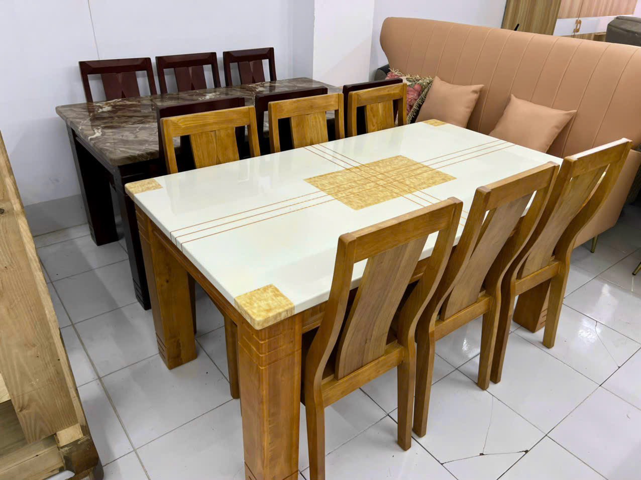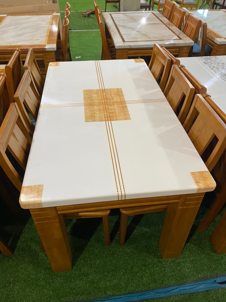 Bộ bàn ghế ăn mặt đá 6 ghế - màu phớt vàng
