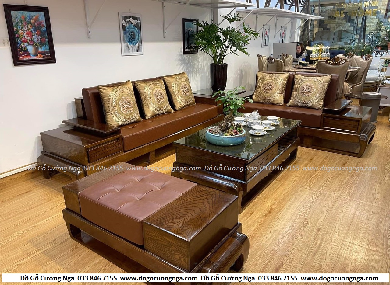 Bộ Bàn Ghế Sofa Gỗ Sồi Nga 2 Văng Hiện Đại