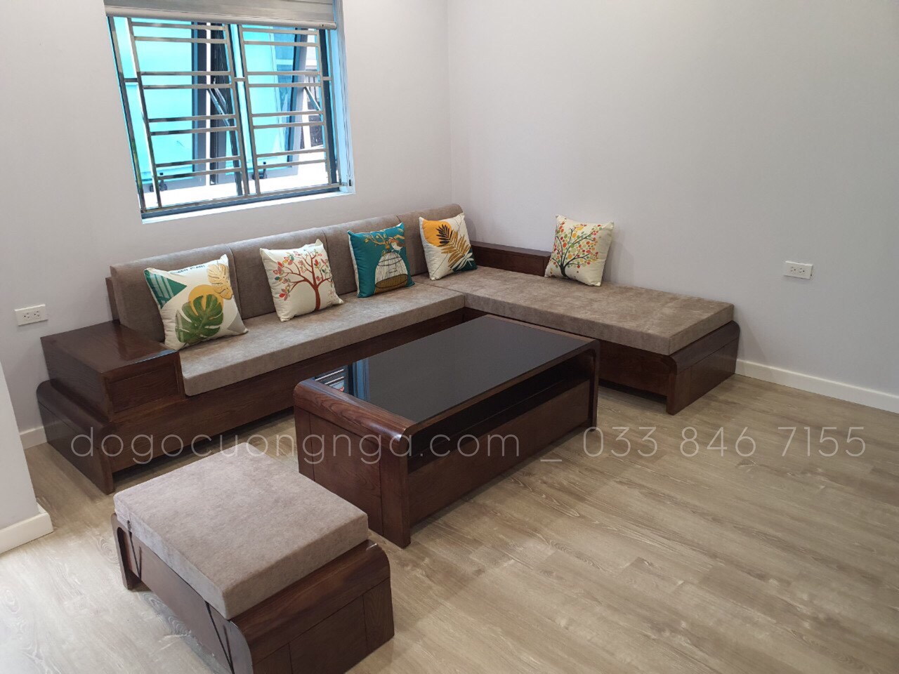 Video Thực Tế Sofa Góc L Gỗ Sồi Nga Chân Cuốn
