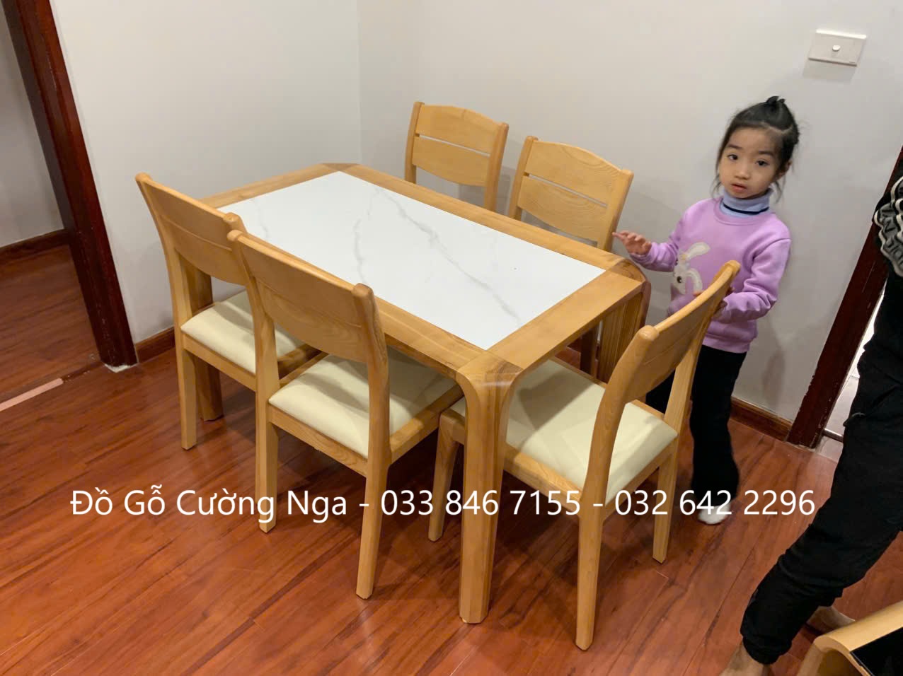 Bô Bàn Ghế Ăn Gỗ Sồi Nga 1m2 Ghế Nệm Kết Hợp Mặt Đá
