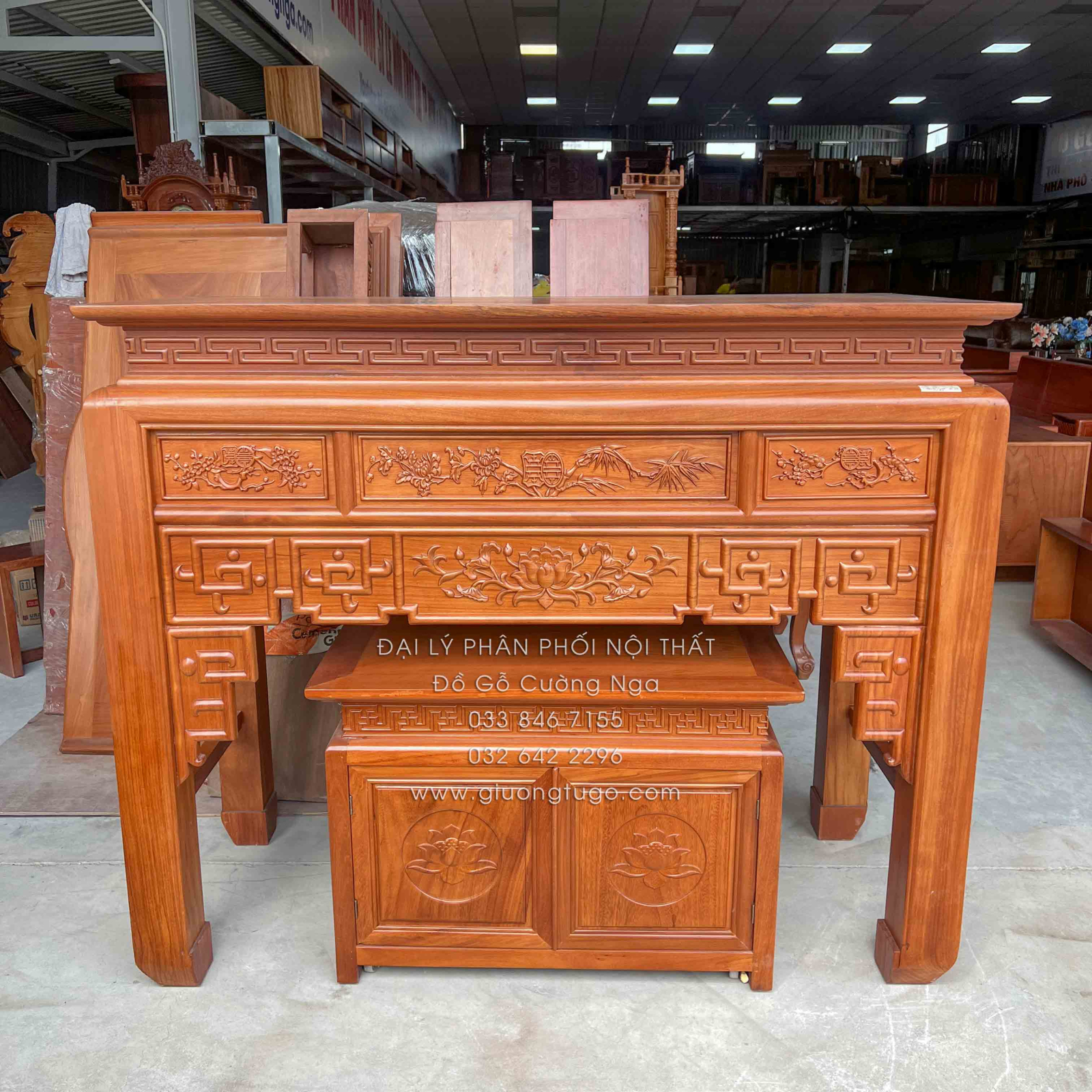 Bàn thờ gỗ gõ đỏ cao cấp 1m53 kèm tủ táp