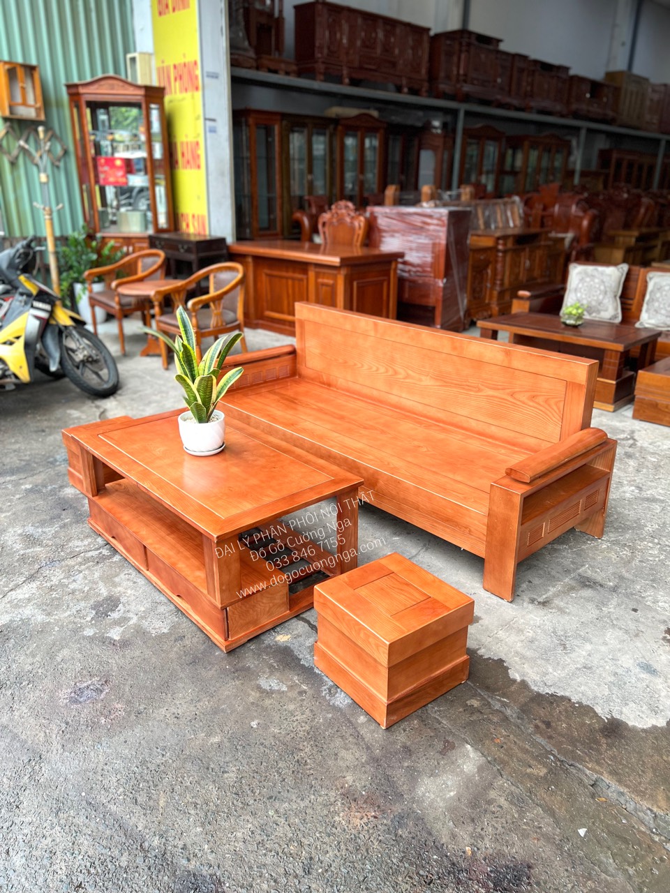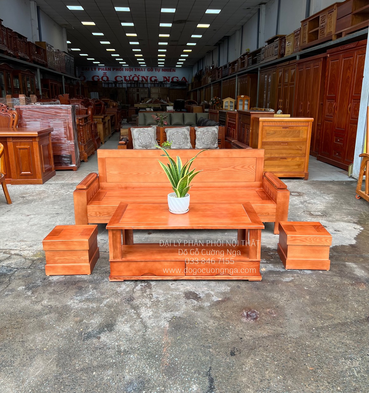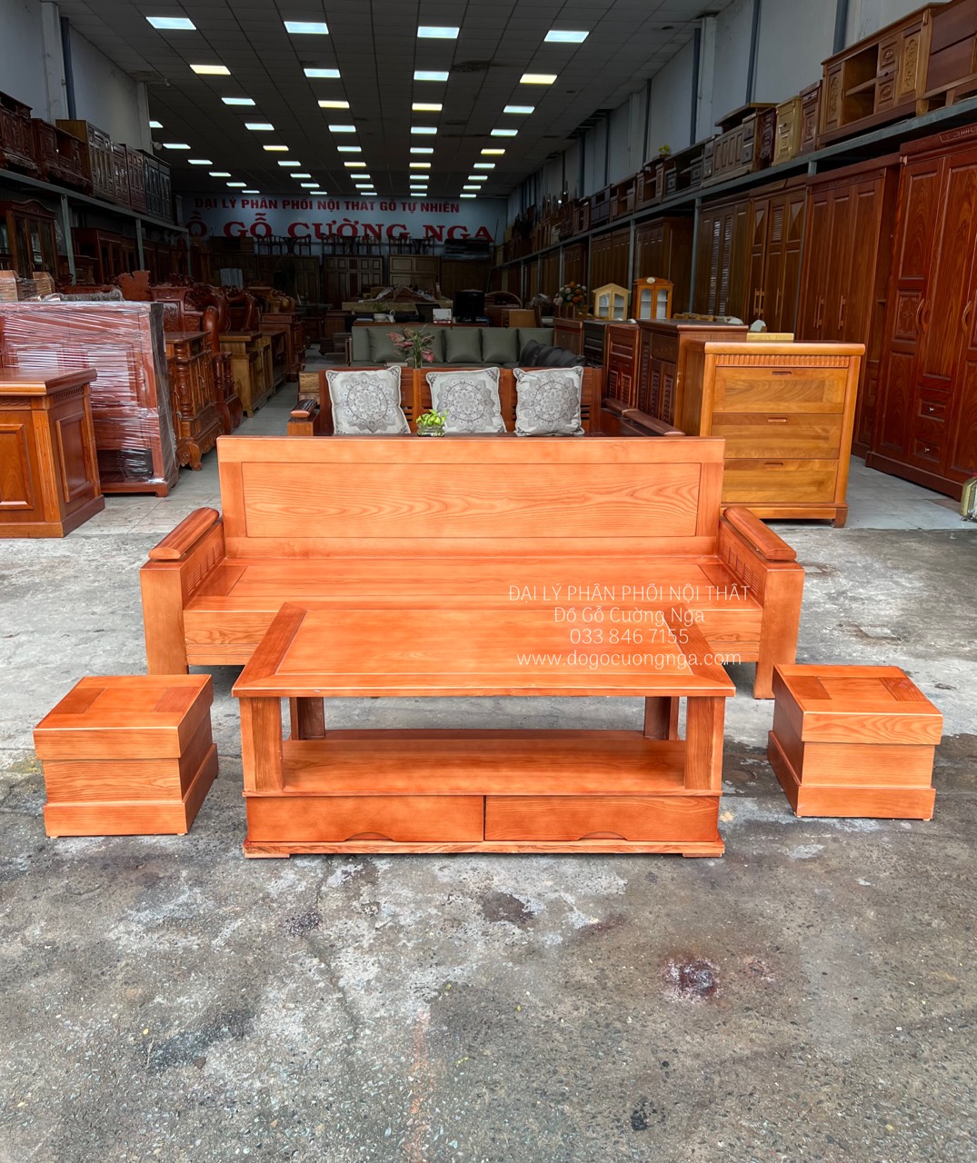 Bộ Ghế Sofa Gỗ Sồi Nga Văng 2m Hiện Đại