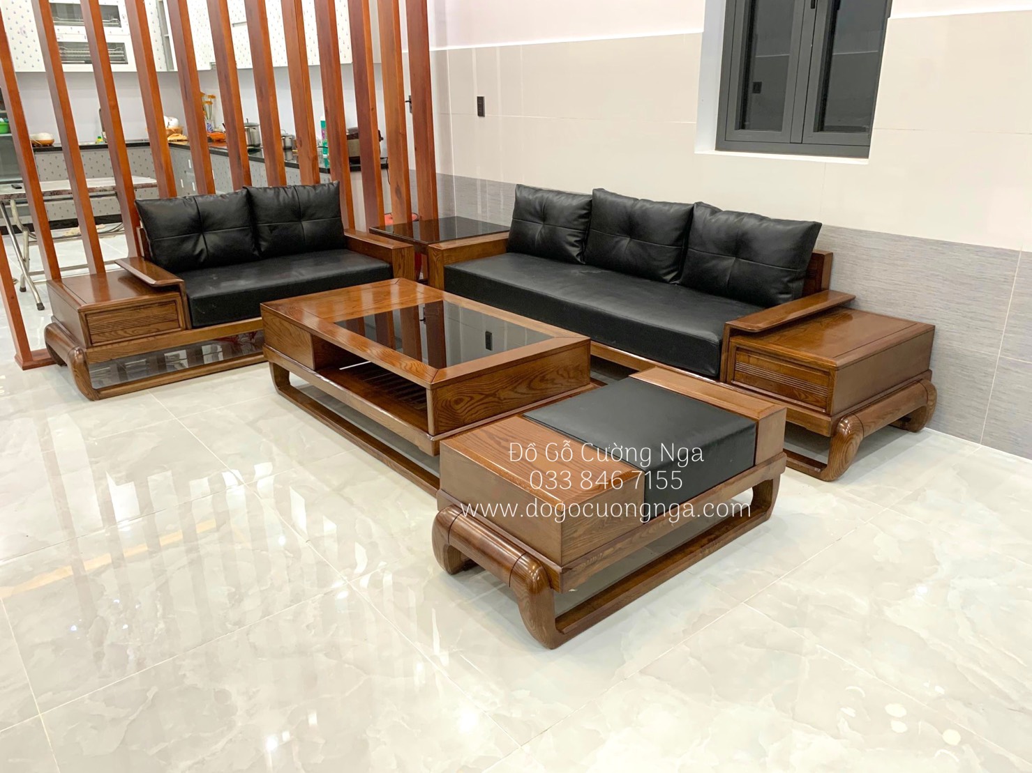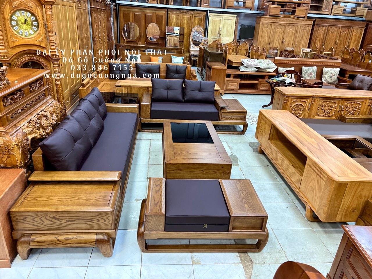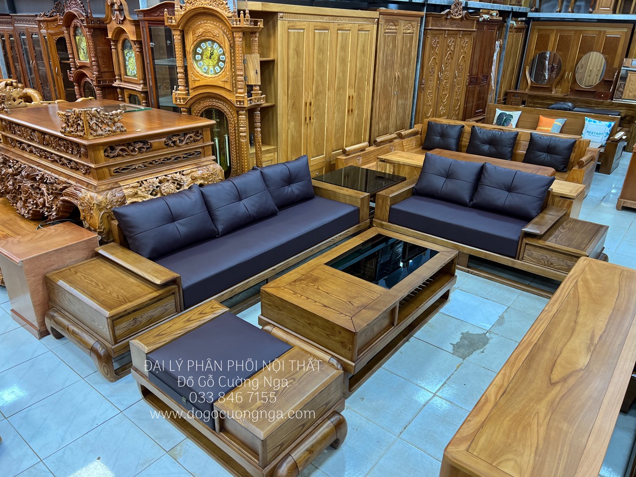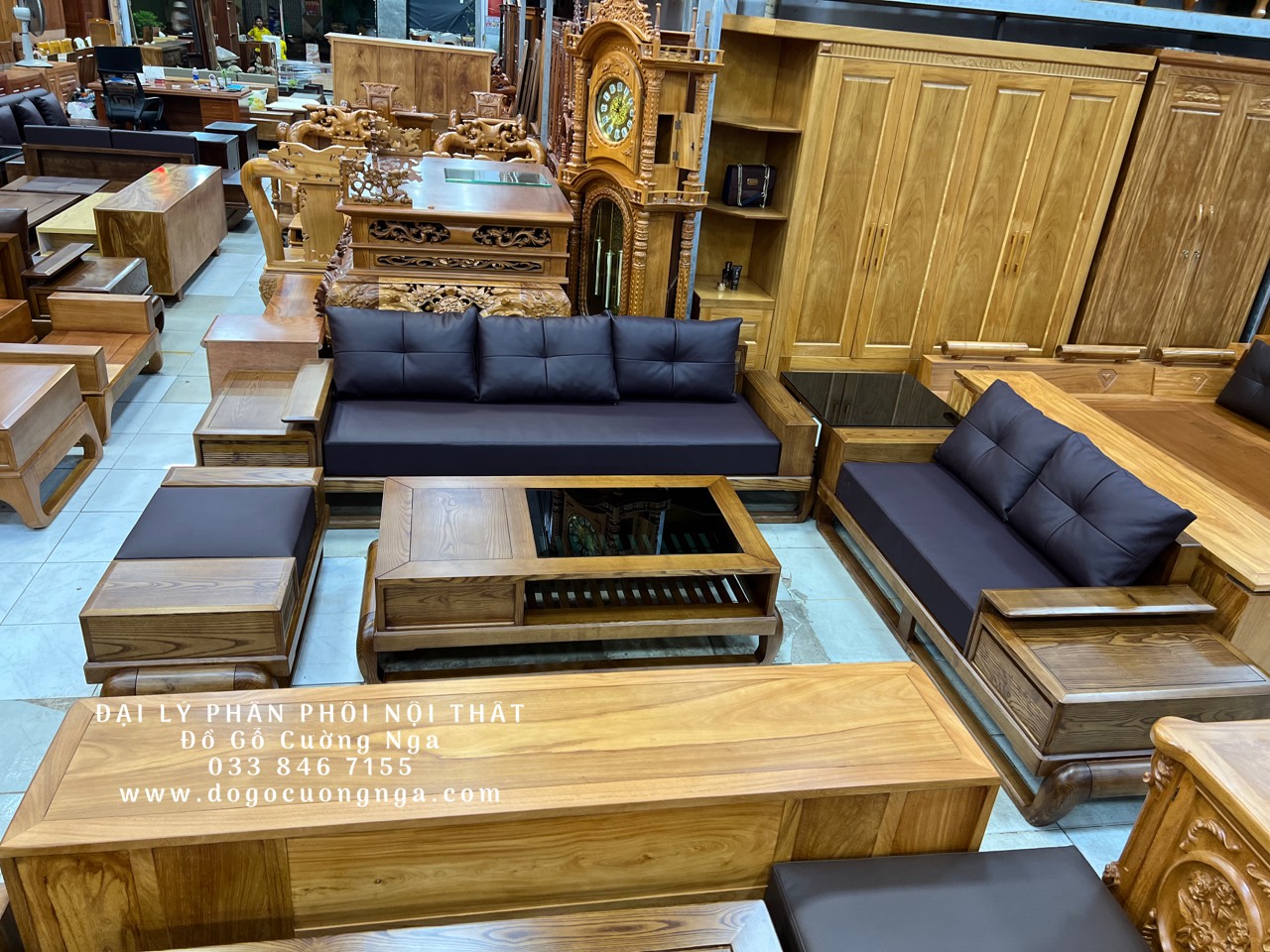 Bộ Ghế Sofa 2 Văng Gỗ Sồi Nga Lau Màu Hương