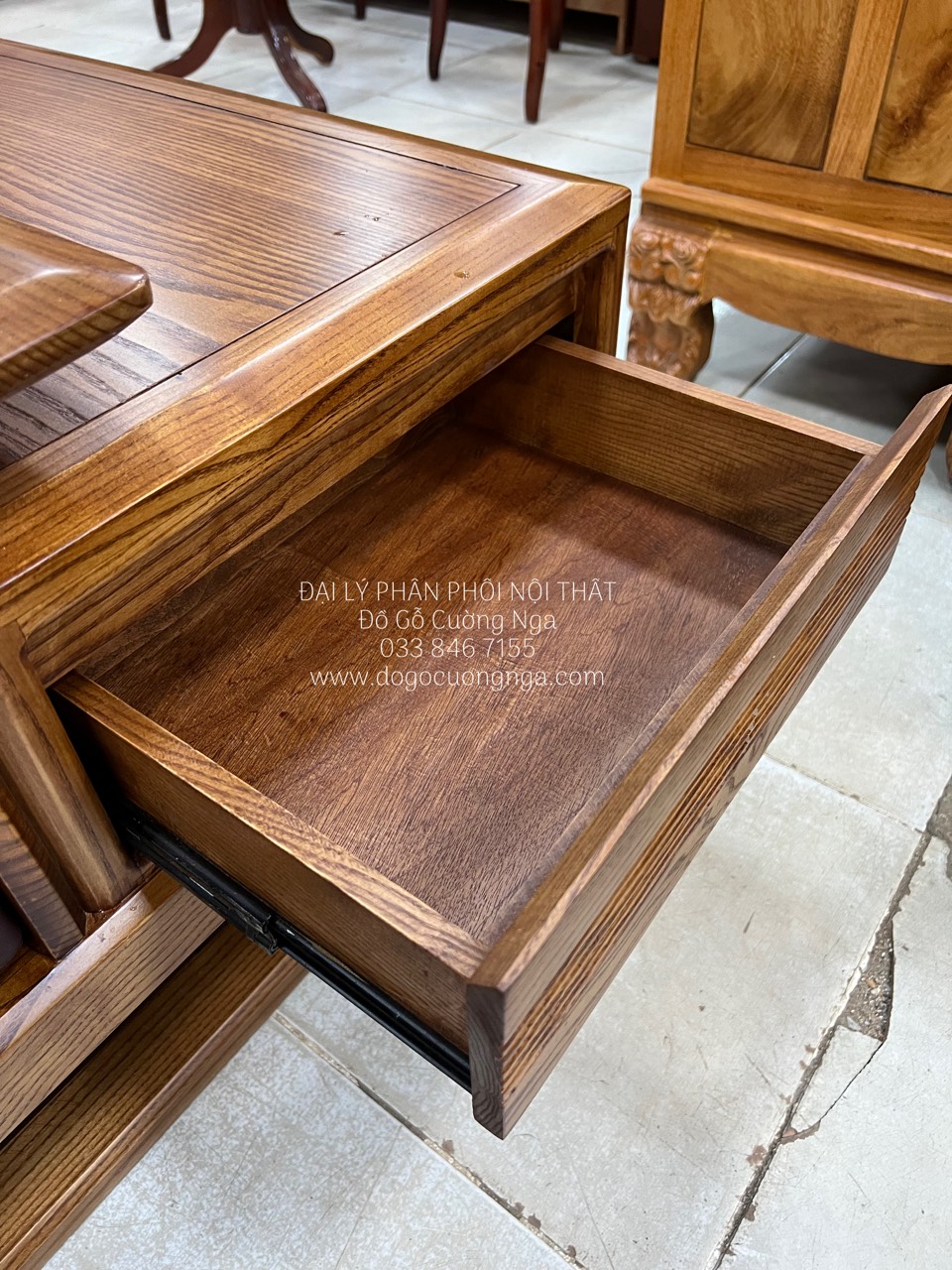 Điều tiếp theo chúng tôi muốn nói đến ở mẫu bàn ghế sofa gỗ Sồi kiểu dáng xếp đối xứng này đó chính là kiểu dáng hiện đại, thiết kế độc lạ, mang đến những trải nghiệm thú vị cho người dùng. Bộ sản phẩm gồm 5 món , 1 ghế dài 2m7 , 1 ghế đơn dài 1m8 và 1 đôn ngồi , 1 bàn trà và 1 đôn ngồi . Ghế dài là ghế 3 chỗ, có 1 bên tay vịn và bên kia là ngăn kéo đựng đồ.