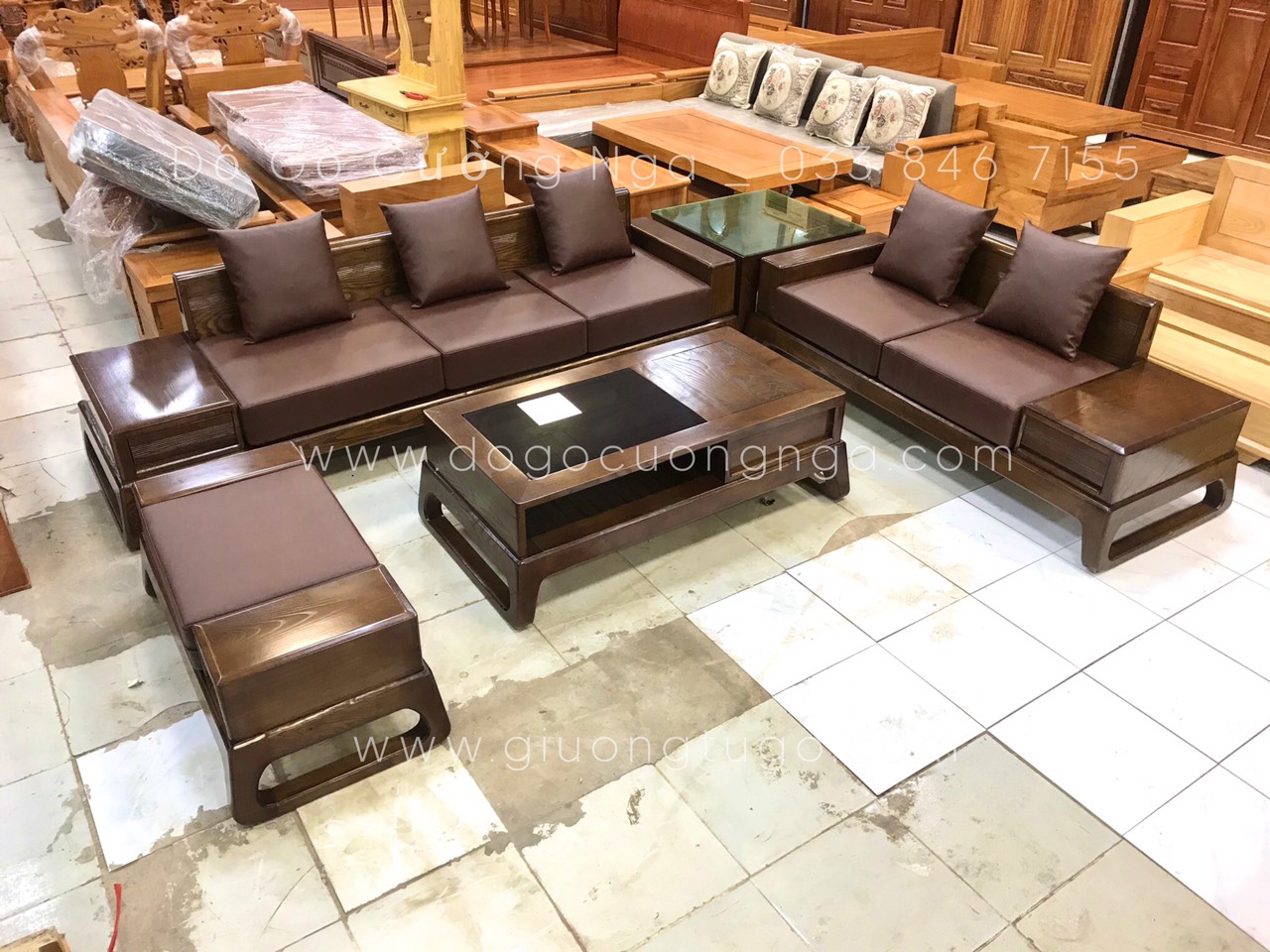 Bộ Sofa Gỗ Sồi Nga 2 Văng Chân Quỳ Óc Chó Cao Cấp ( Tặng Nệm)