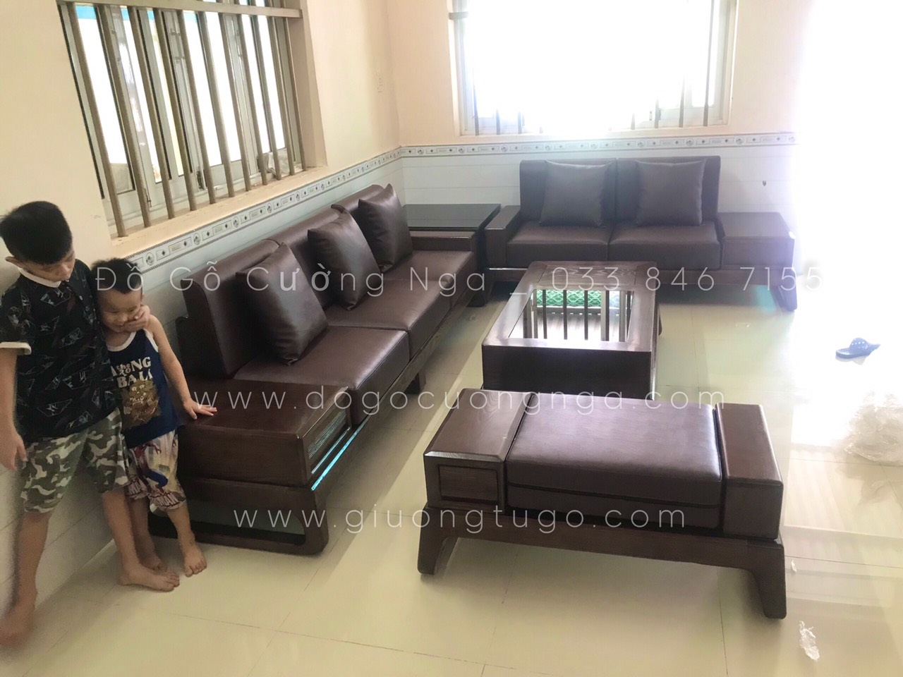 Bộ Sofa Gỗ Sồi Nga Óc Chó Cao Cấp ( Tặng Nệm)