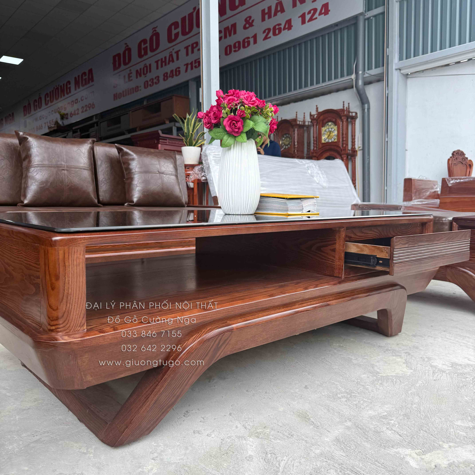 Thông tin chi tiết Bộ Sofa Gỗ Sồi Nga 2 Văng Chân Thuyền 3m3x2m6 Màu Óc Chó Cao Cấp