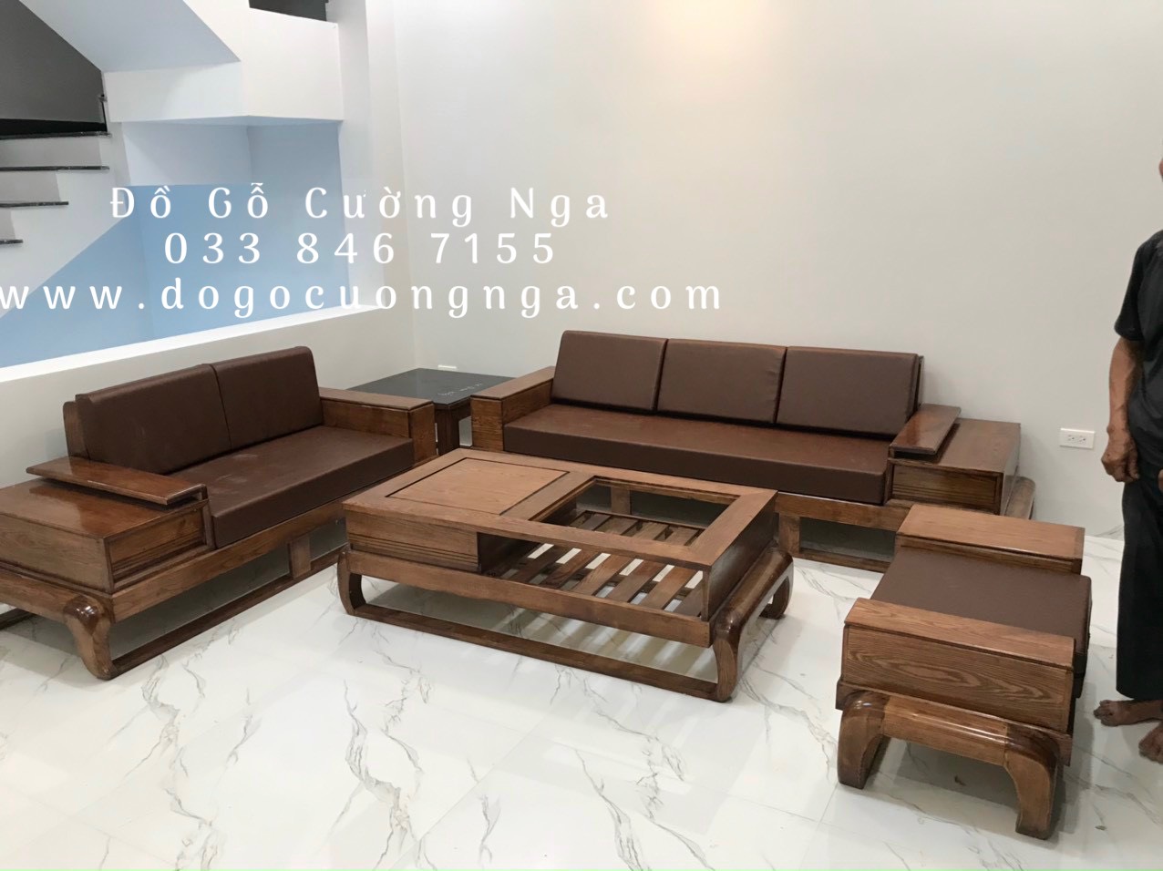 Sofa Gỗ Sồi Nga Lau Màu Hương 2 Văng Đùi Gà