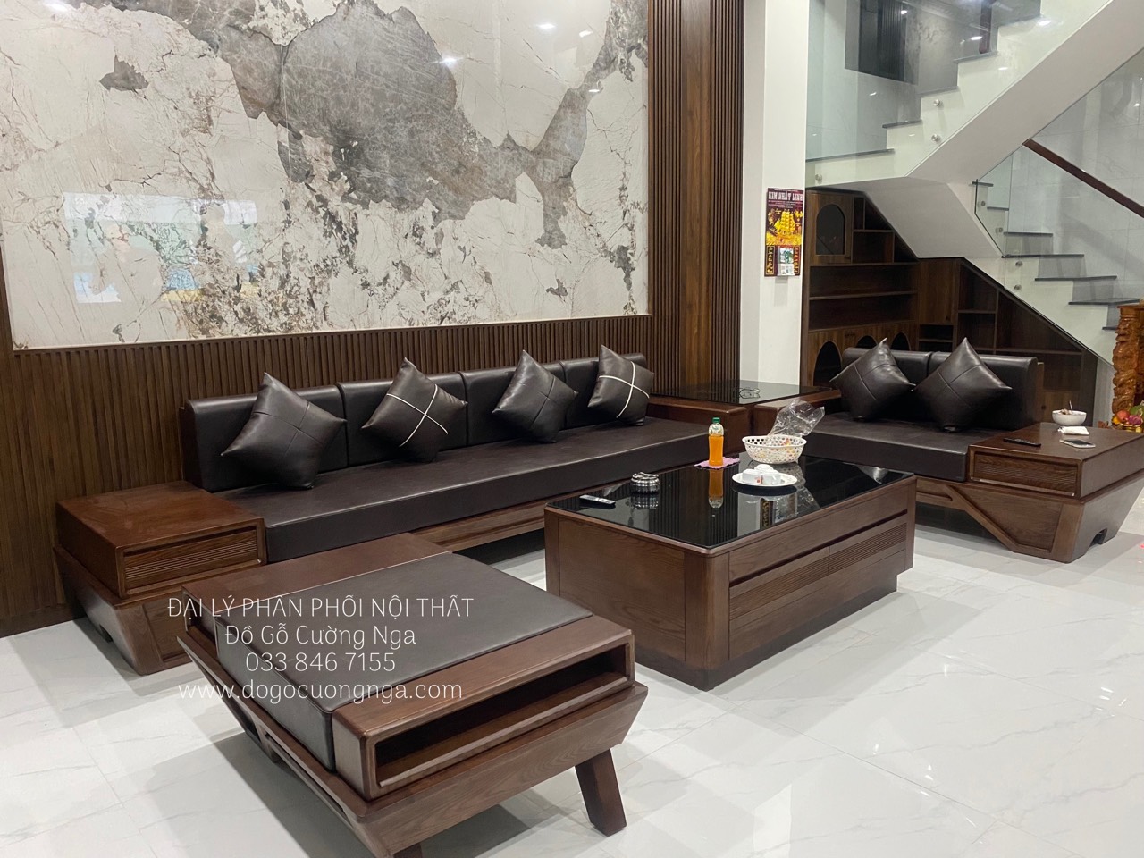 Bộ Sofa Gỗ Sồi Nga Màu Óc Chó Mẫu Thuyền