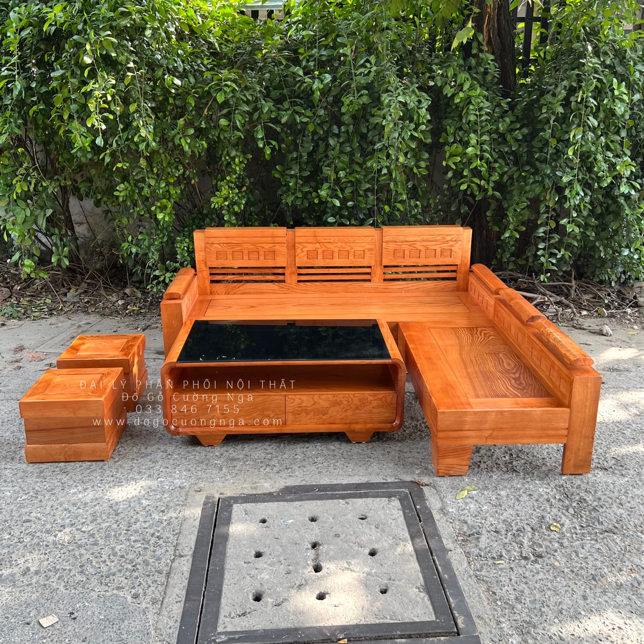 Chi tết bộ sofa góc L gỗ sồi nga hiện đại