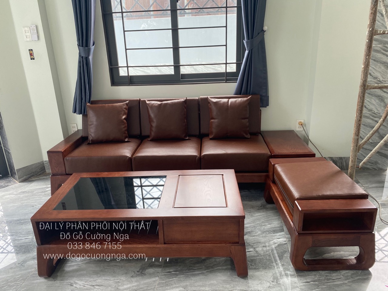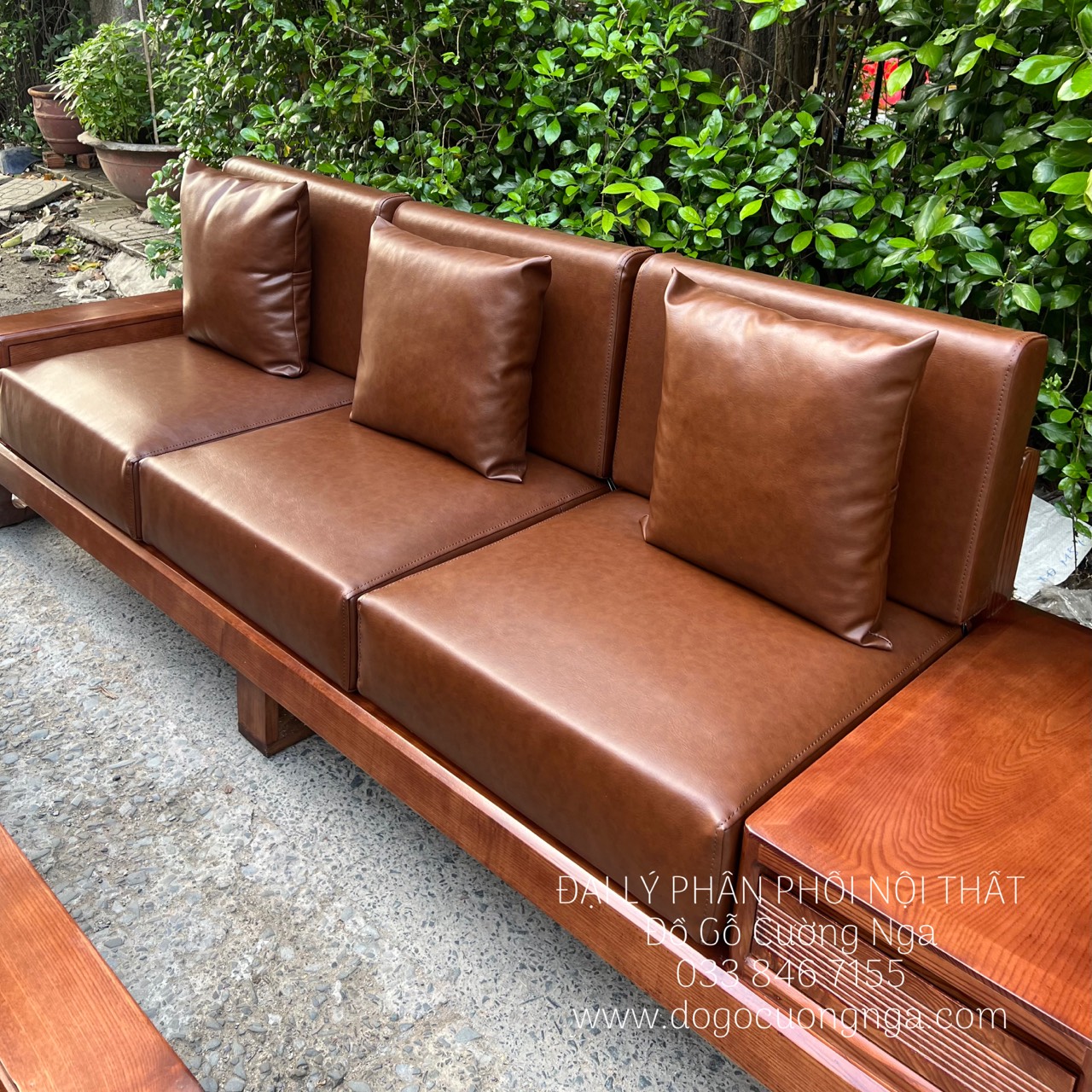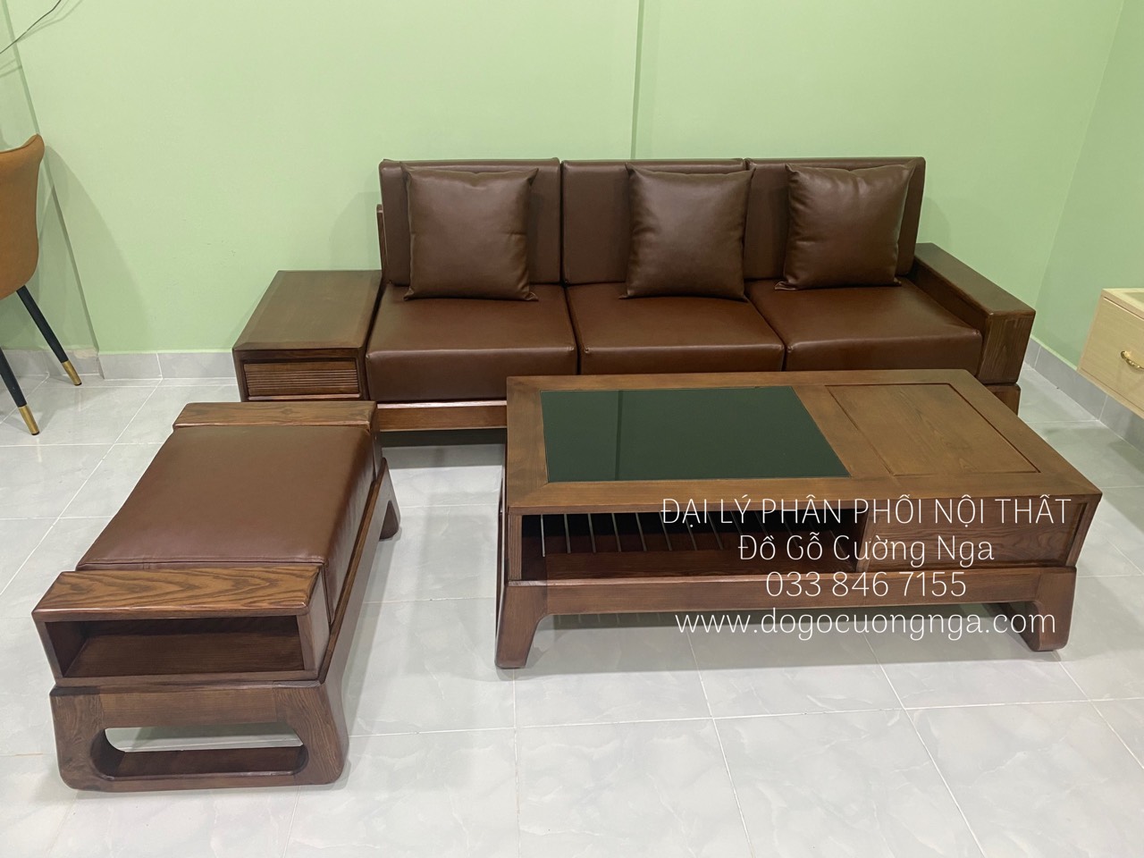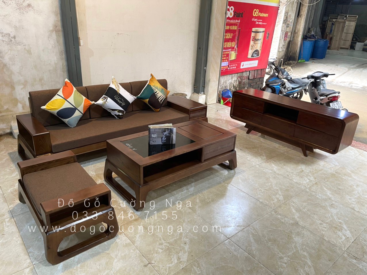 Bộ Sofa Văng Gỗ Sồi Nga Lau Màu Óc Chó 2m3 Kèm Nệm