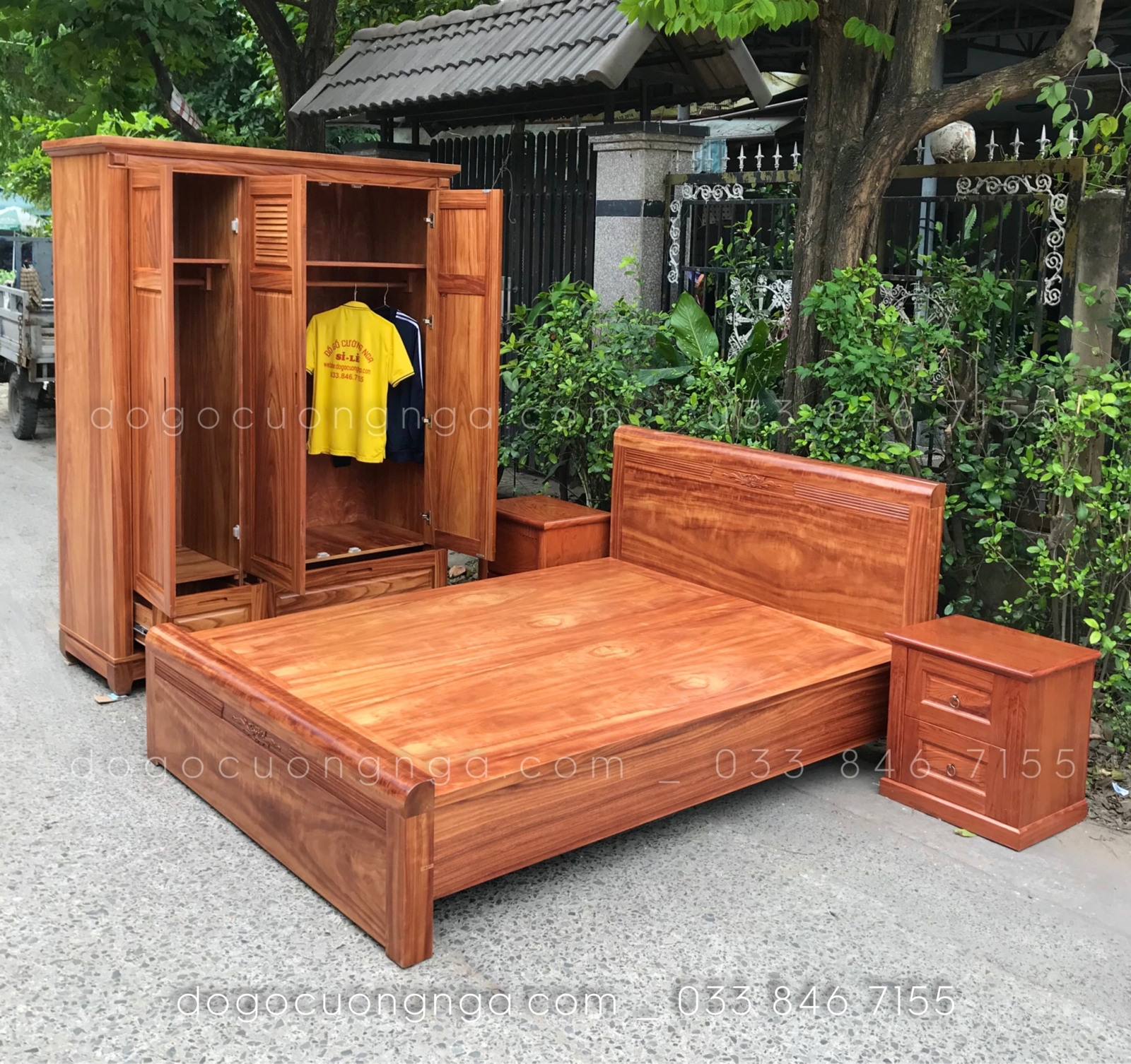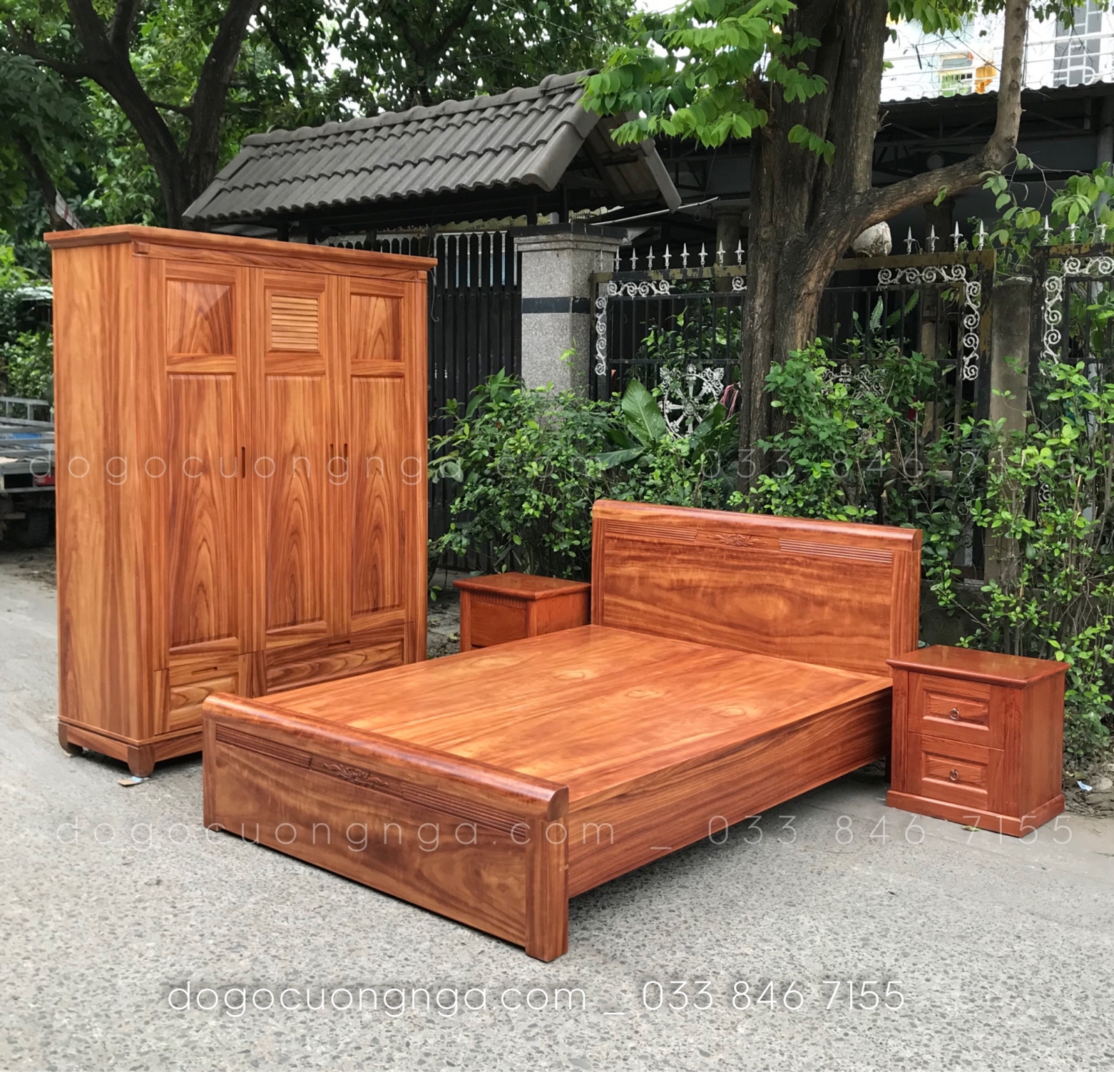Combo nội thất phòng ngủ gỗ cẩm tự nhiên - mẫu hiện đại