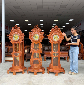 Đồng Hồ Gỗ Hương Đá Mẫu Hoa Hồng Cao Cấp 1m75