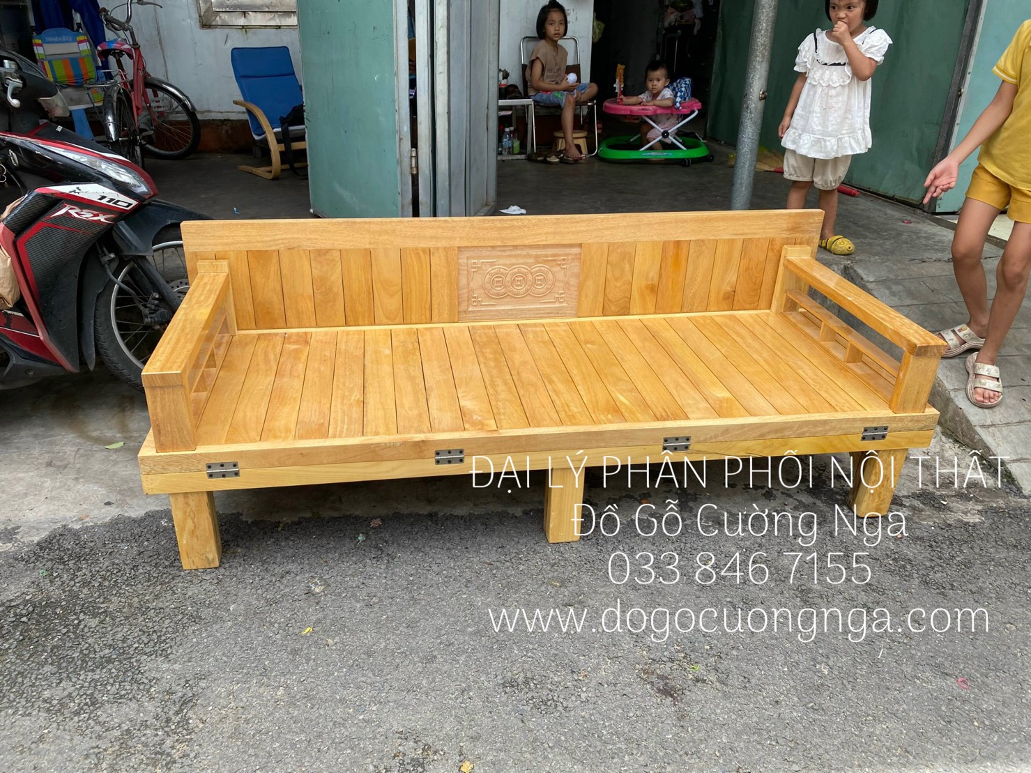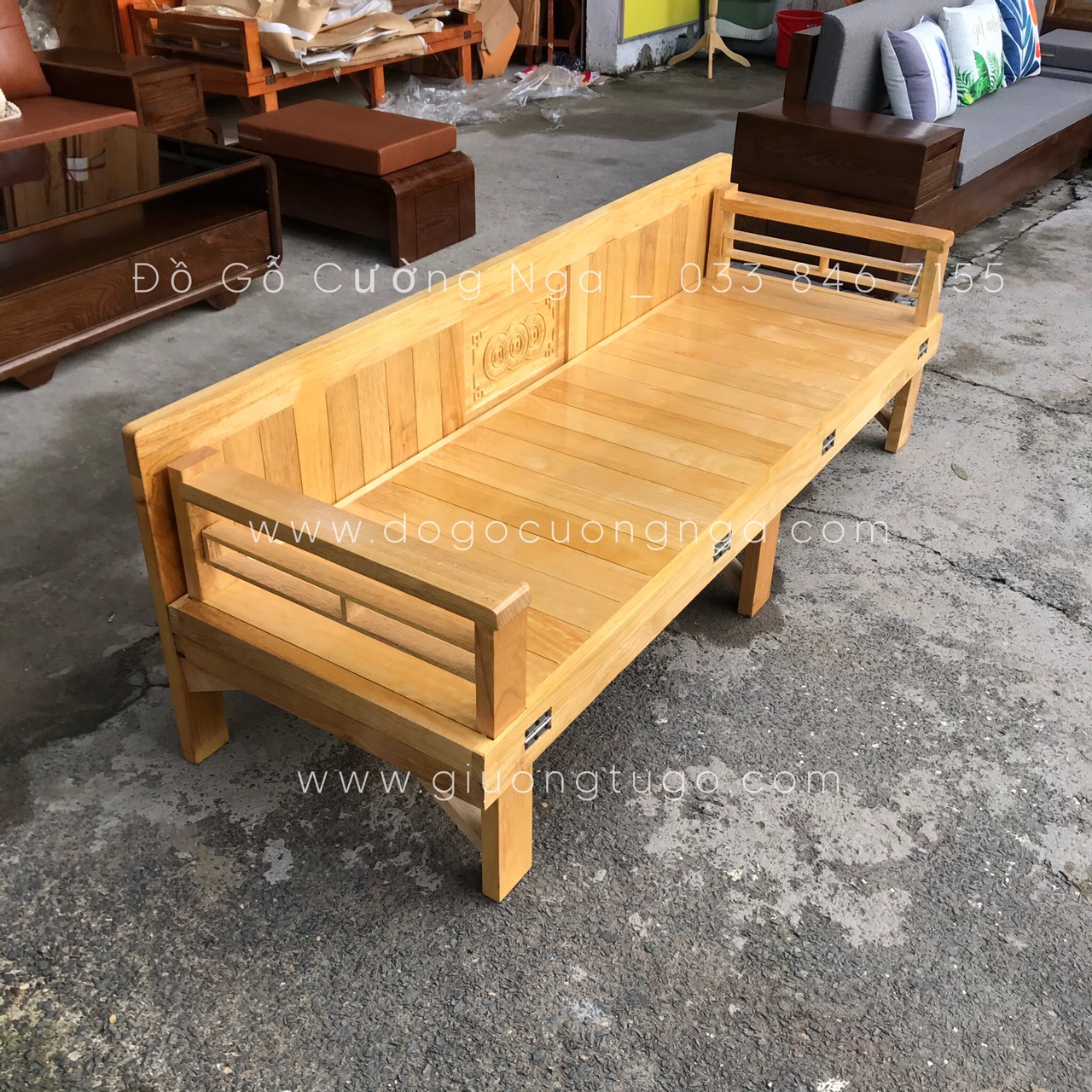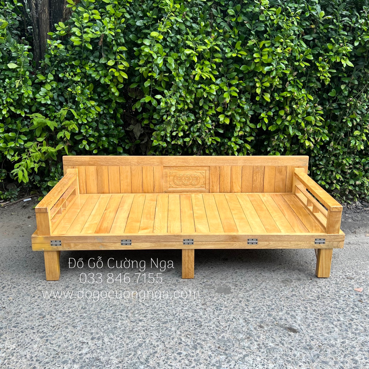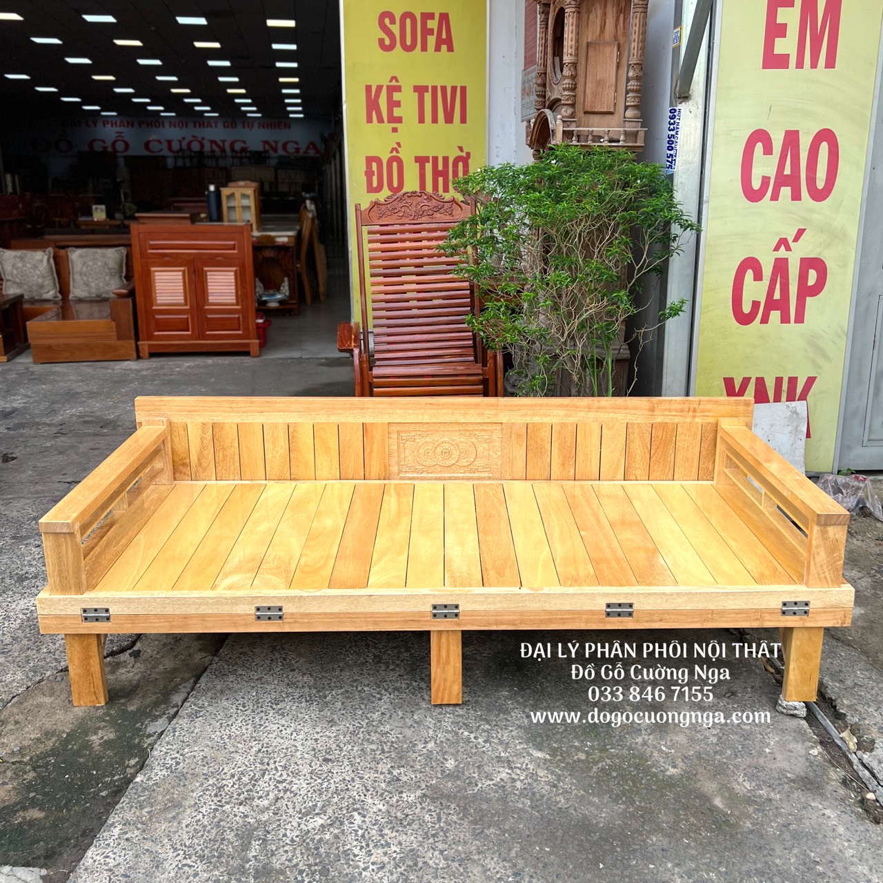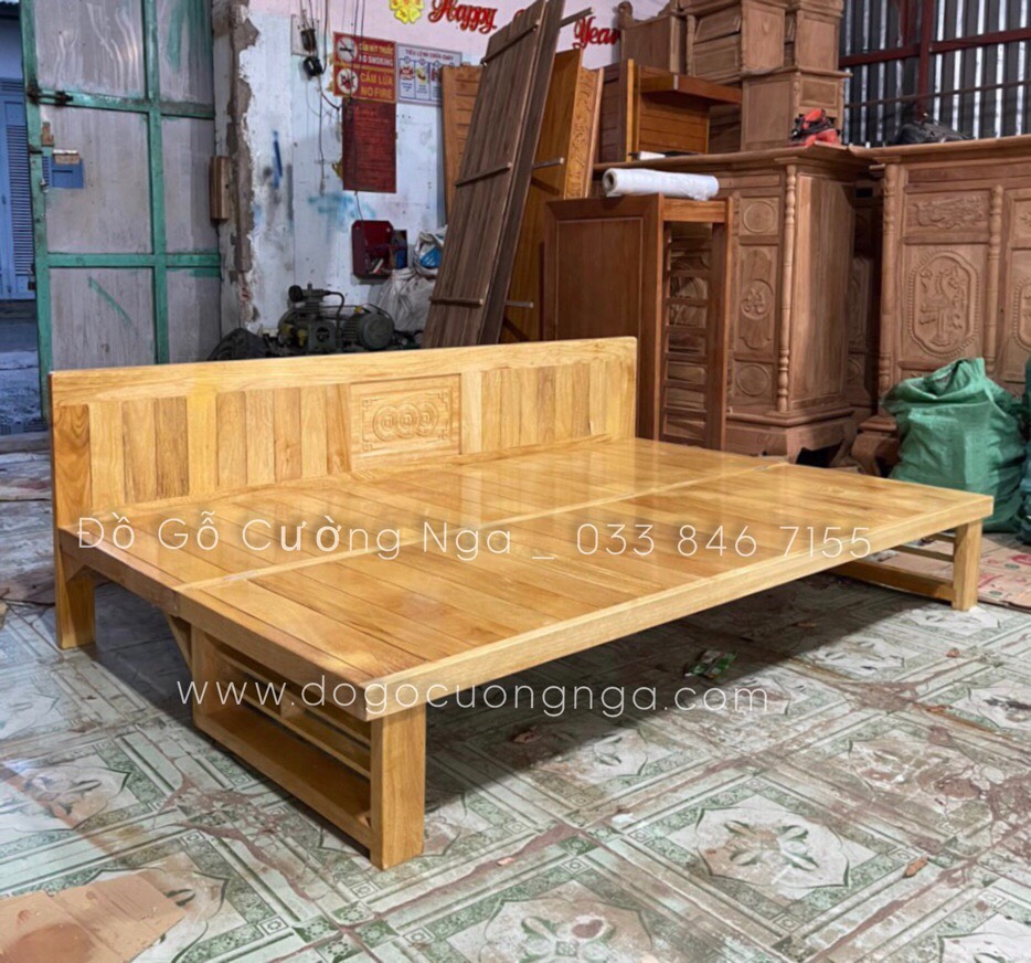 Ghế Giường Gấp Đa Năng Gỗ Sồi 1m4x1m9 Màu Tự Nhiên Giá Rẻ