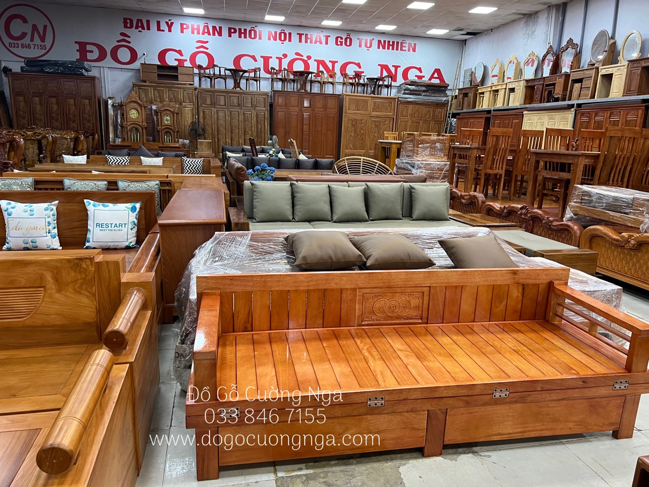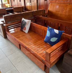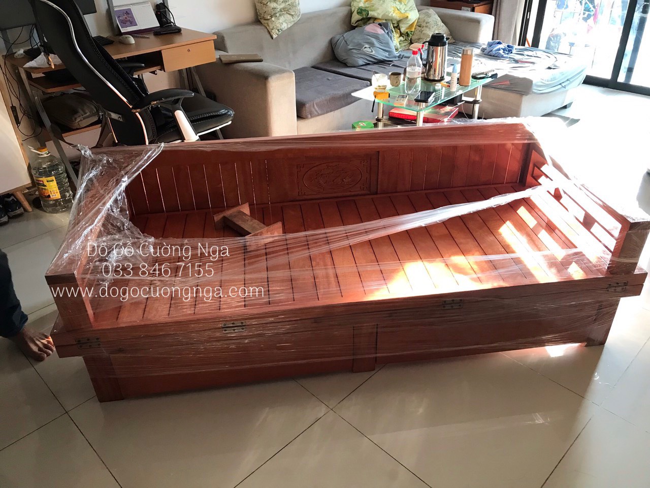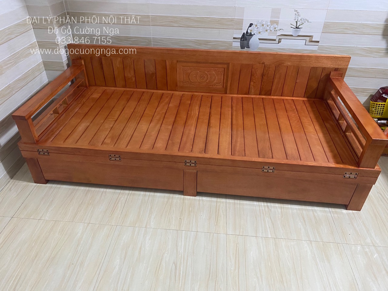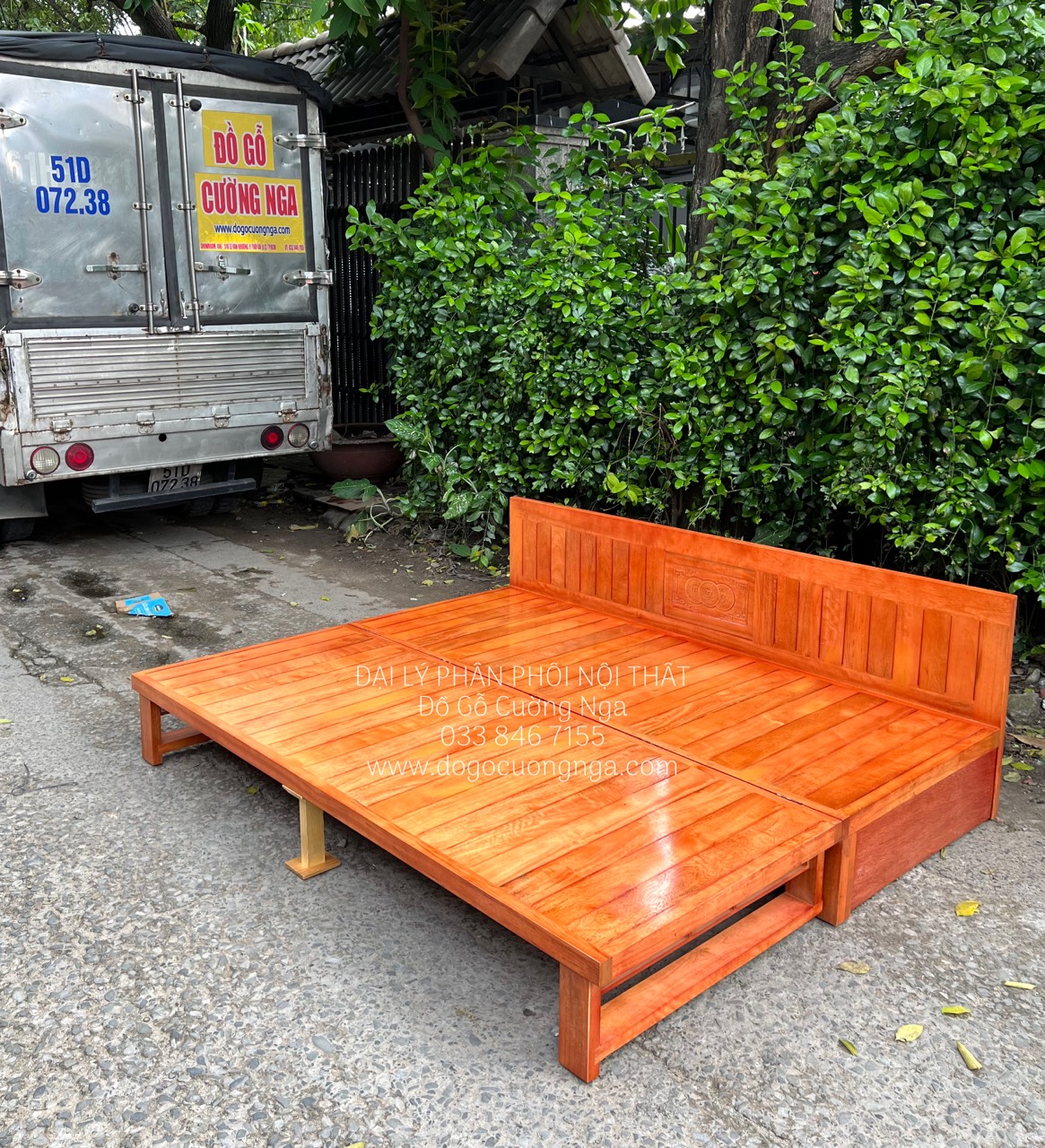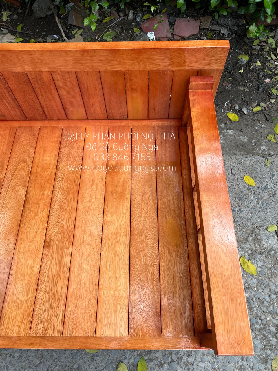 Ghế Giường Gỗ Sồi 2 Ngăn Kéo 1m4x1m9 Màu Cánh Gián Đẹp Giá Rẻ