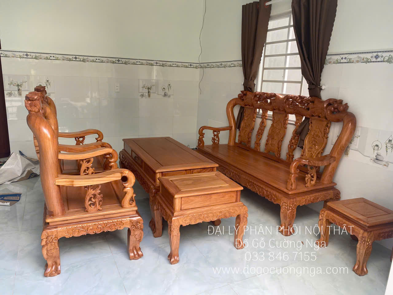 Salon gỗ gõ đỏ cao cấp tay 10 - 6 món