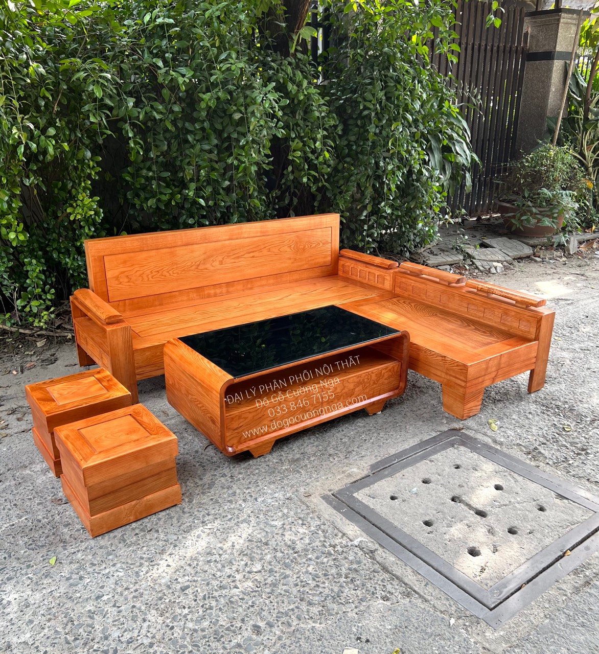 Ghế Sofa Góc L Gỗ Sồi Nga Lau Màu Gõ Đỏ 2mx1m8 - Bàn Hiện Đại