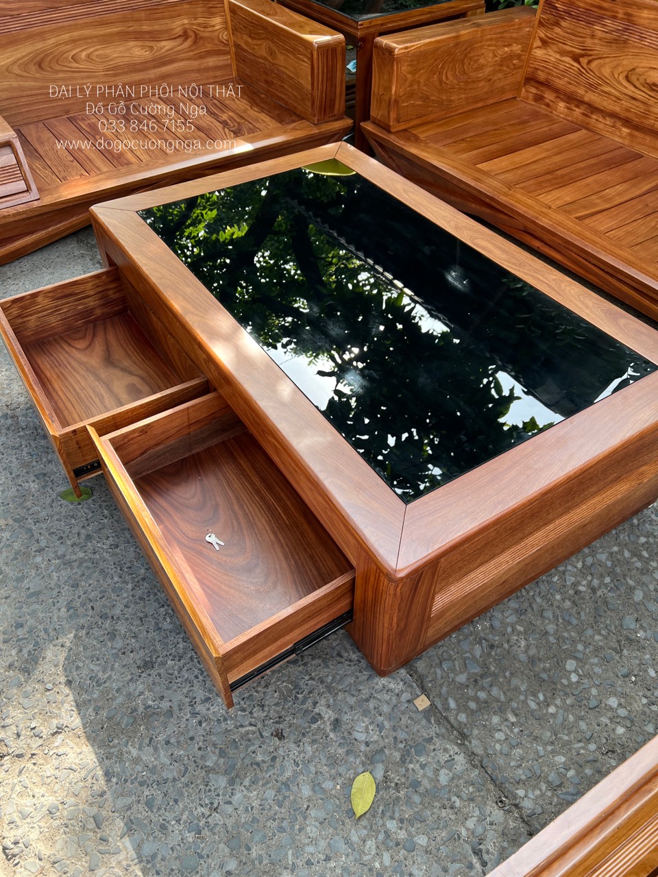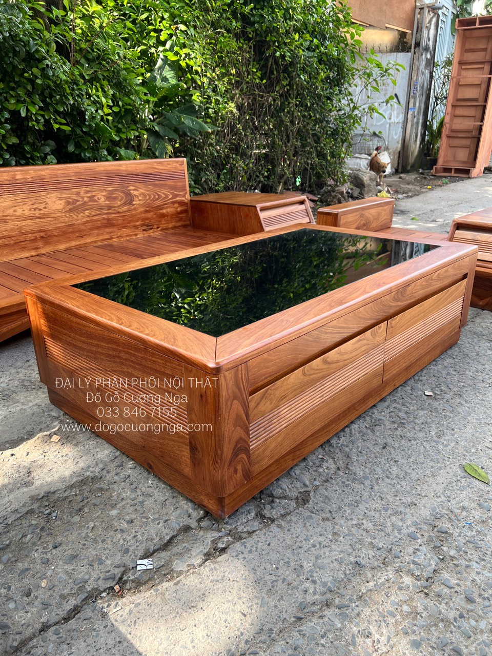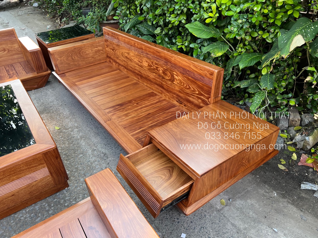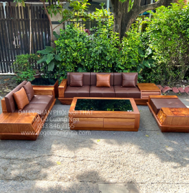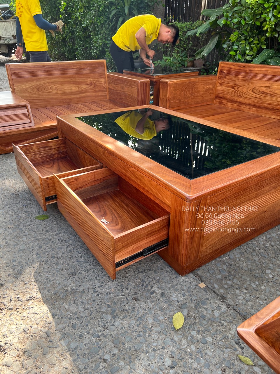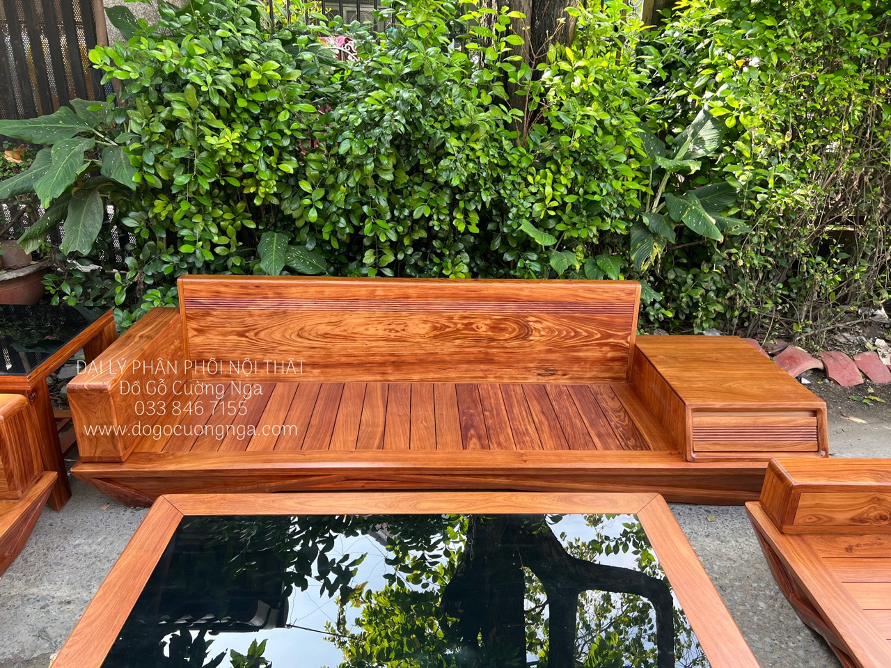 Bộ Sofa Gỗ Hương Vàng 2 Văng Sang Trọng