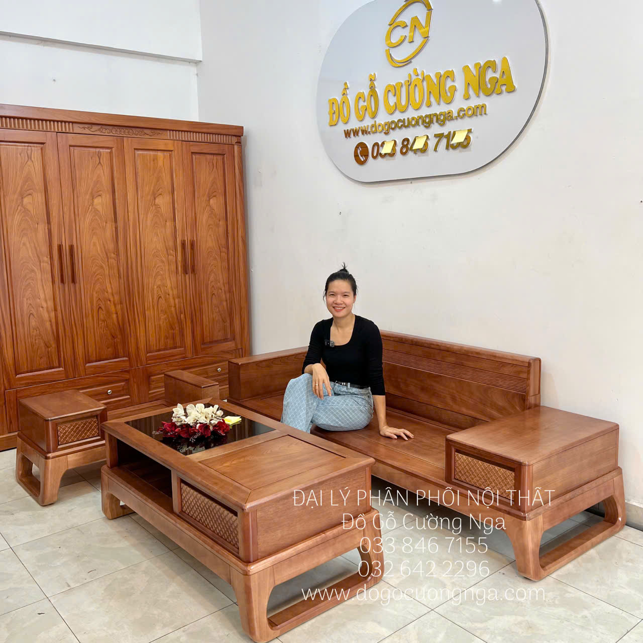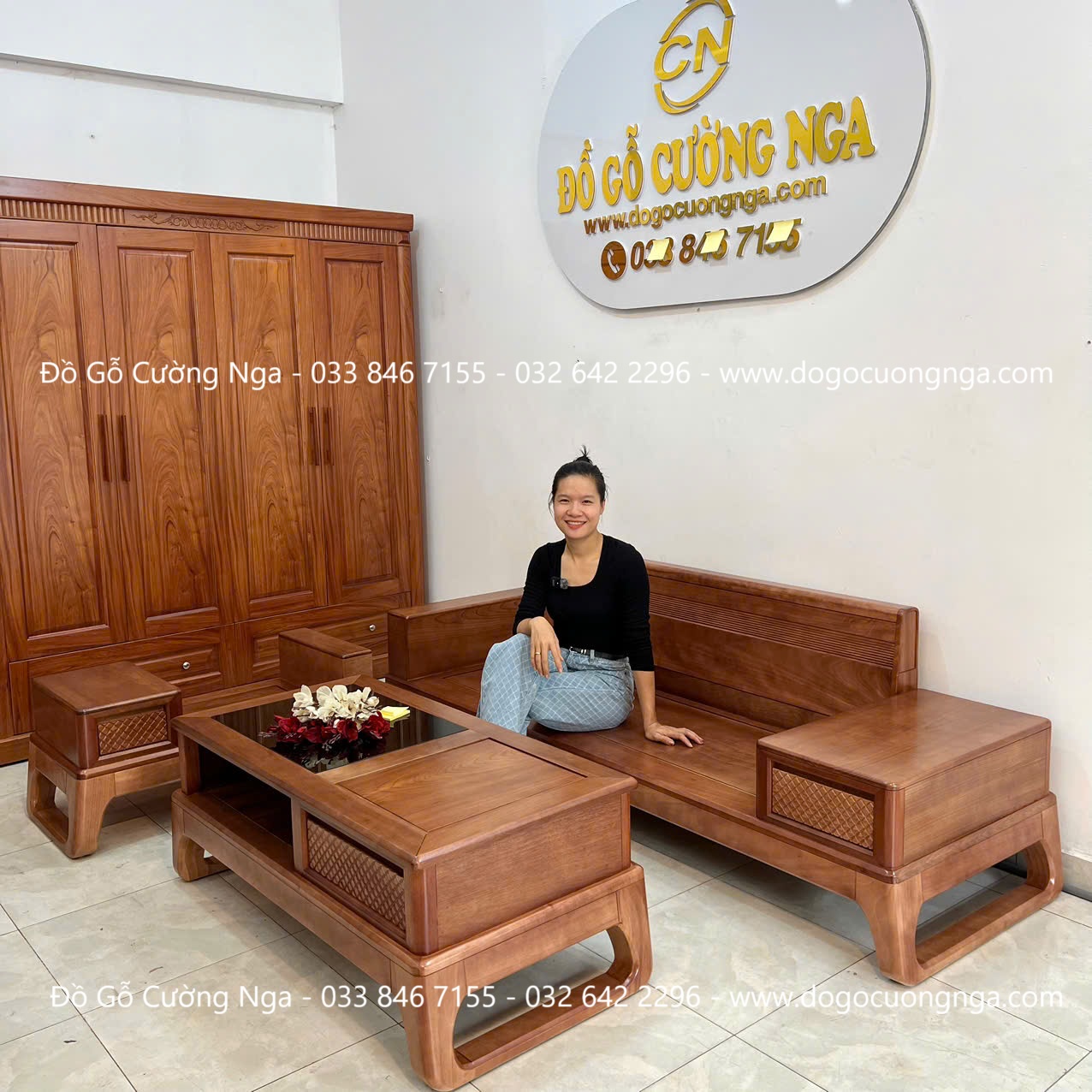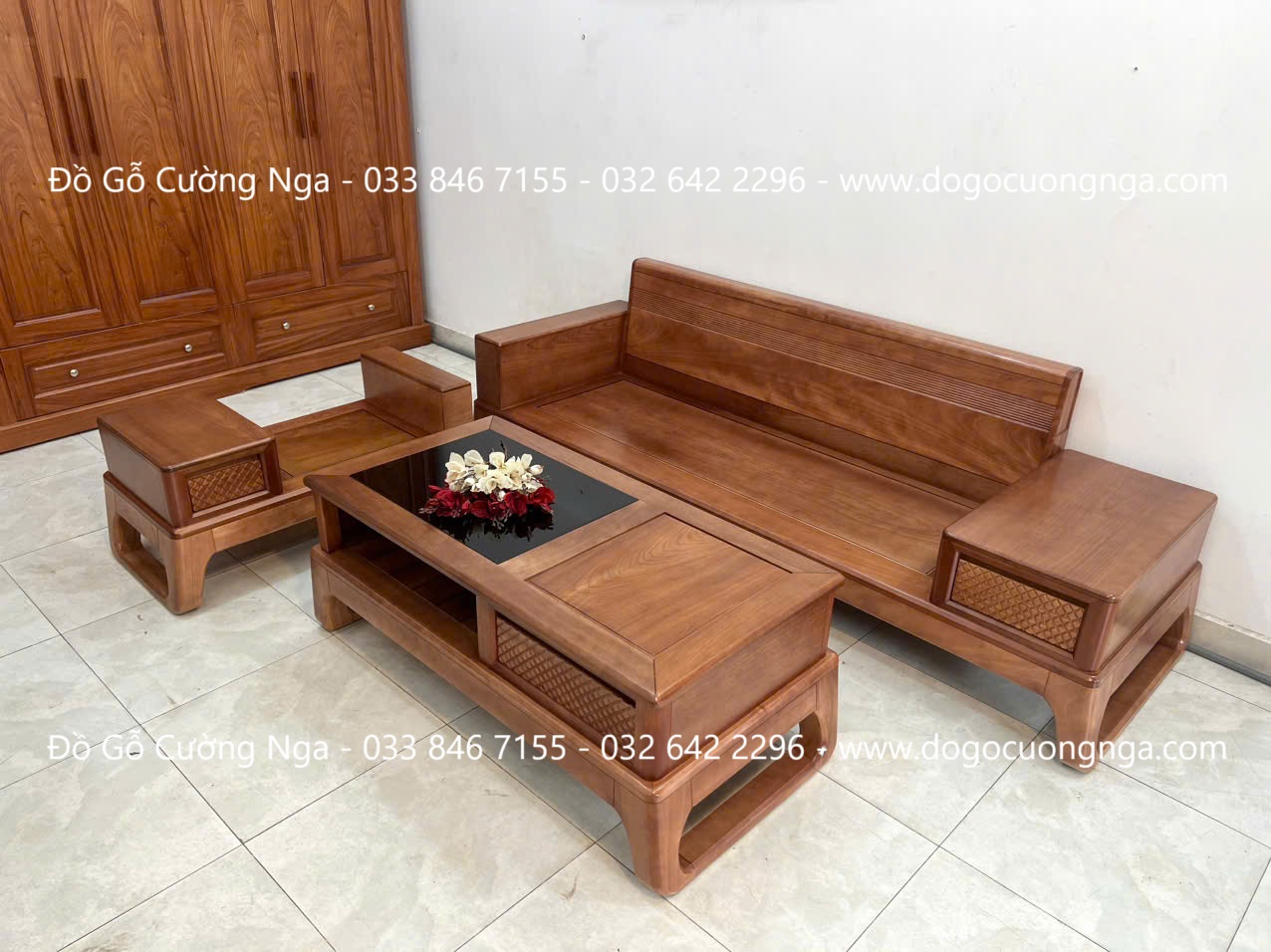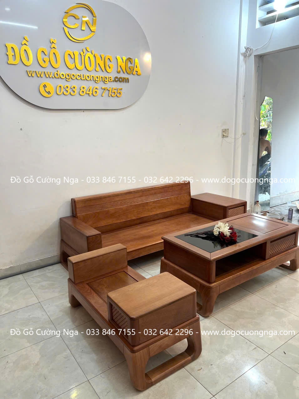 Ghế Sofa Văng Gỗ Xoan Đào Chân Choãi Hiện Đại 3 Món