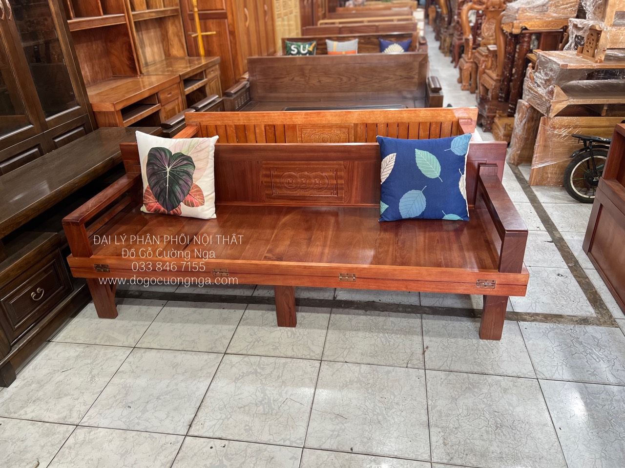 Ghế sofa gỗ kéo ra thành giường gỗ xoan đào hiện đang là sản phẩm được nhiều người quan tâm nhất trên thị trường. Với thiết kế ghế sofa kéo thành giường này, bạn chỉ cần kéo nhẹ phần hông là chiếc ghế đã biến thành chiếc giường rộng rãi cho bạn nằm. Loại ghế sofa này phù hợp với những gia đình có đông thành viên ngồi quây quần bên nhau rất ấm cúng.