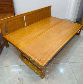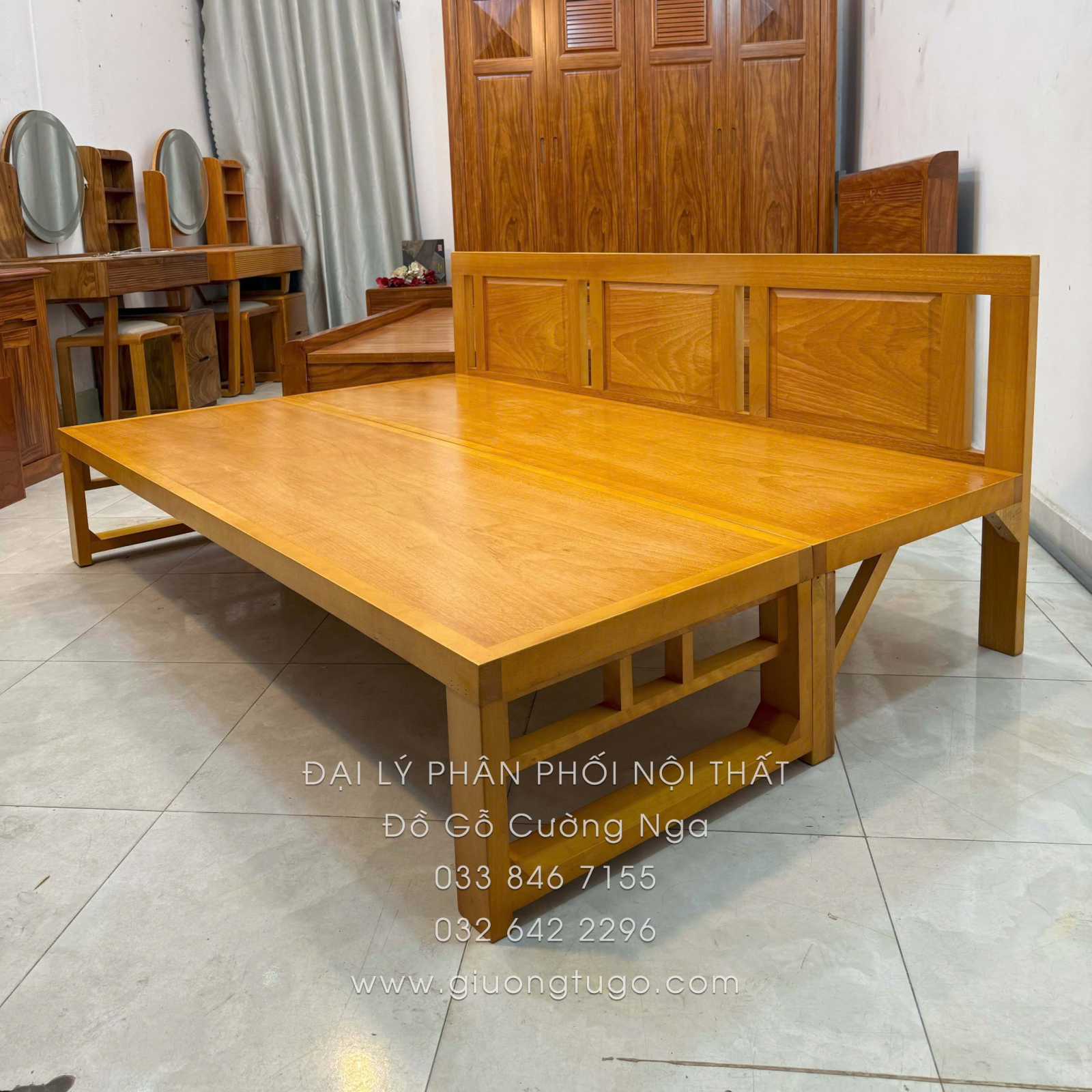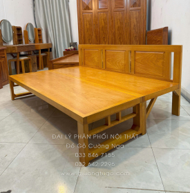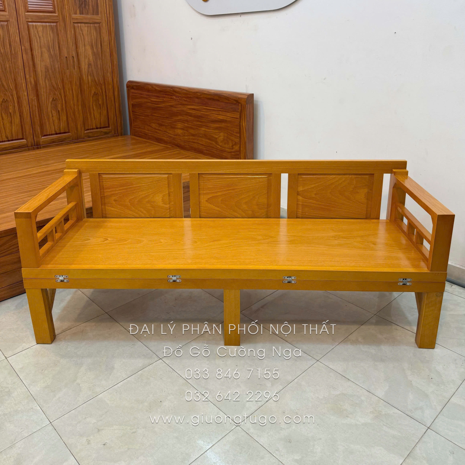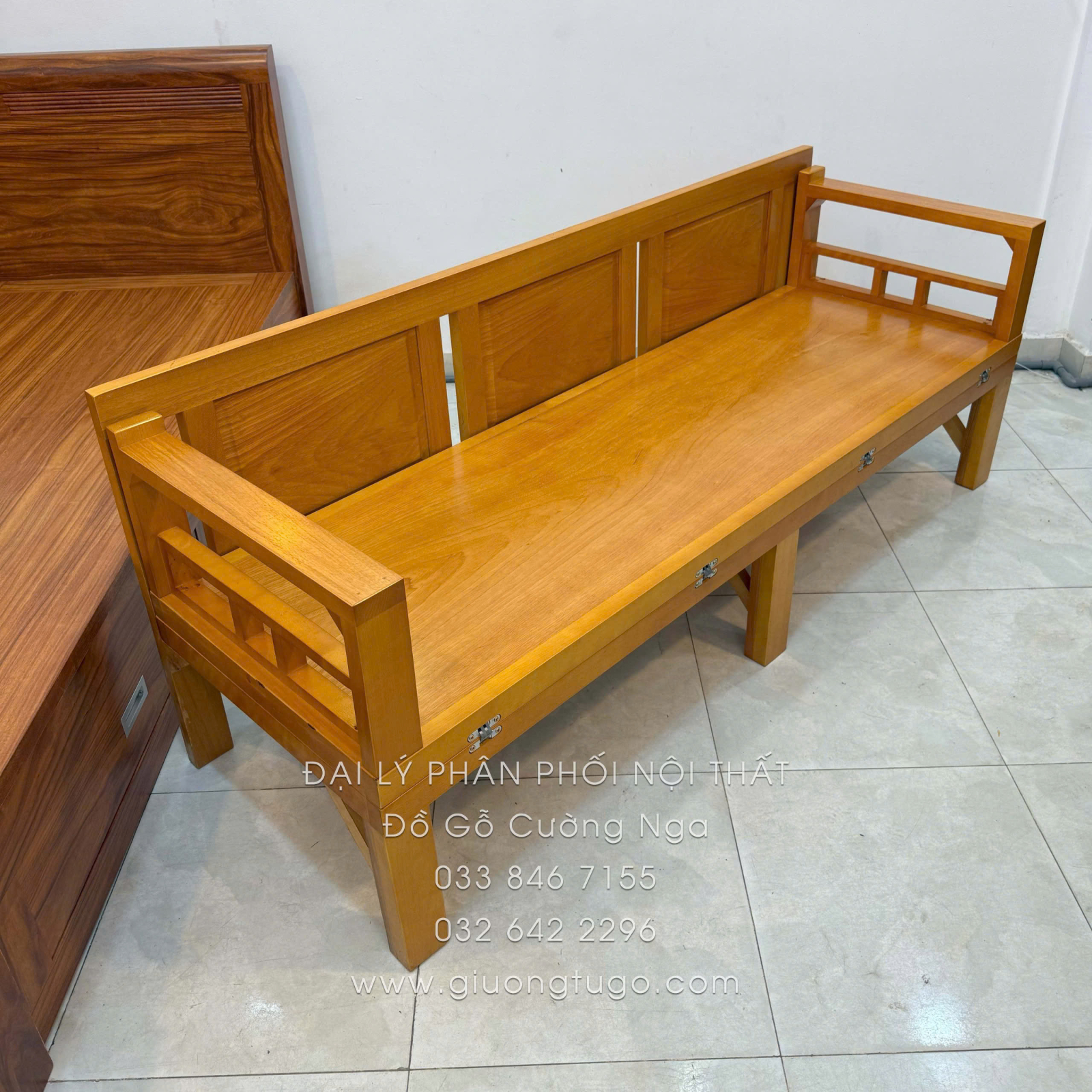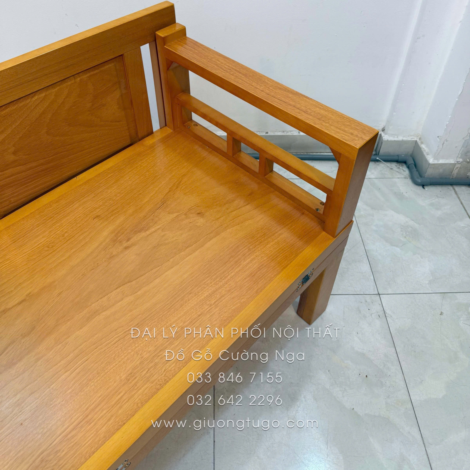 Giường Gấp Gỗ Xoan Đào 2 Ngăn Kéo Kèm Bàn (Có Kính) & Đôn Gỗ Sồi Bền Đẹp