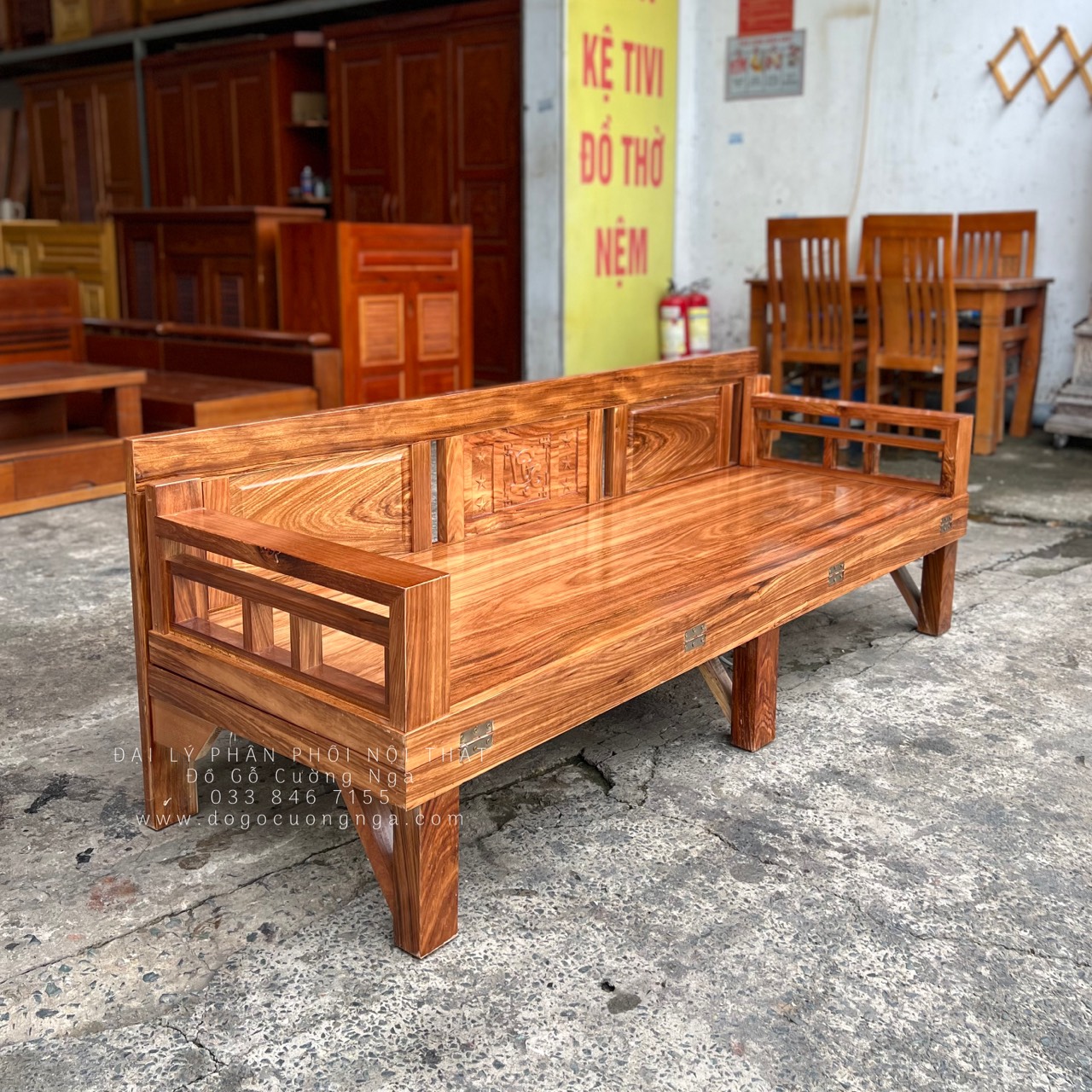 Giường Gấp Gỗ Xoan Đào 2 Ngăn Kéo Kèm Bàn (Có Kính) & Đôn Gỗ Sồi Bền Đẹp