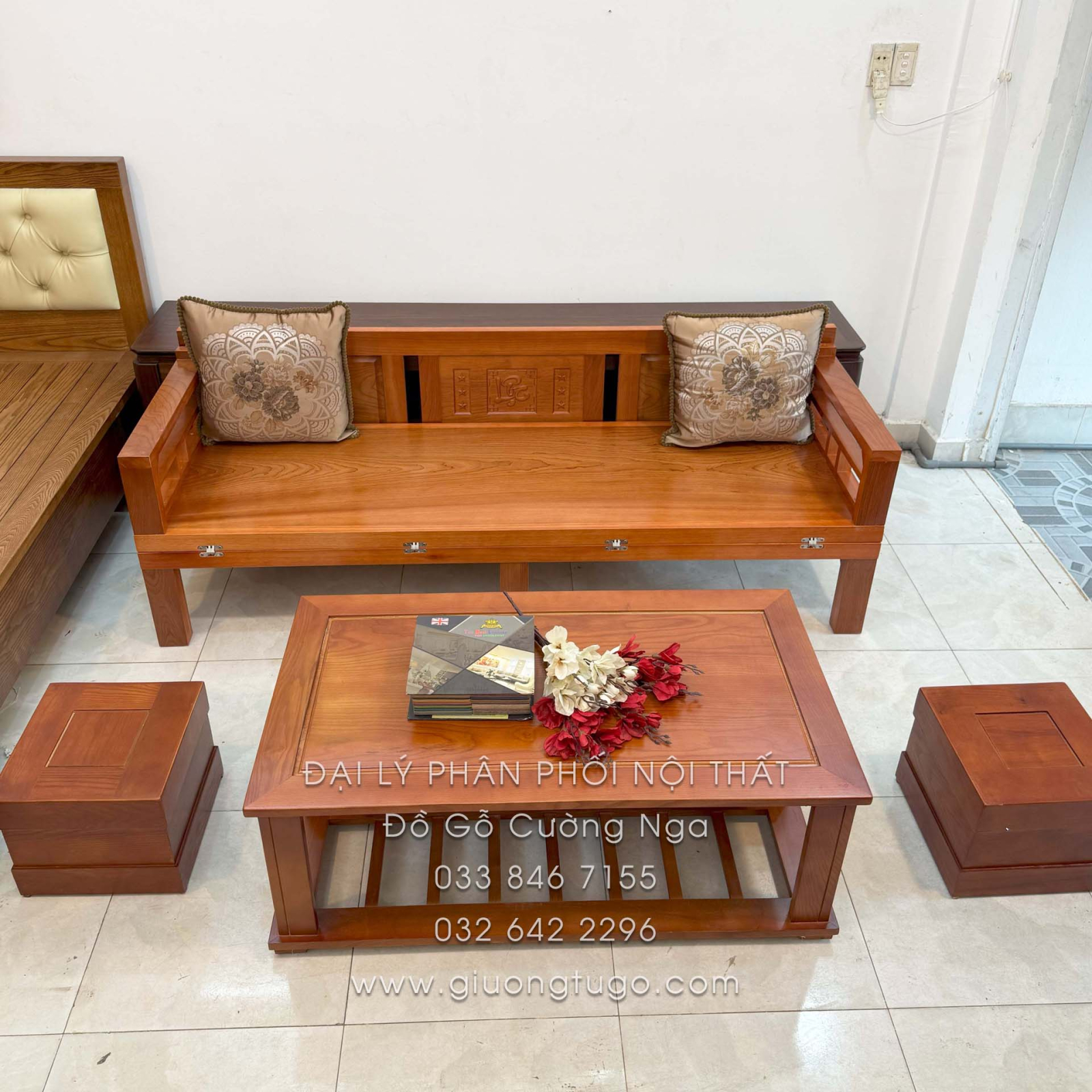 Mua Giường Gấp Gỗ Xoan Đào kèm Bàn (có kính) và Đôn Gỗ Sồi ở đâu?