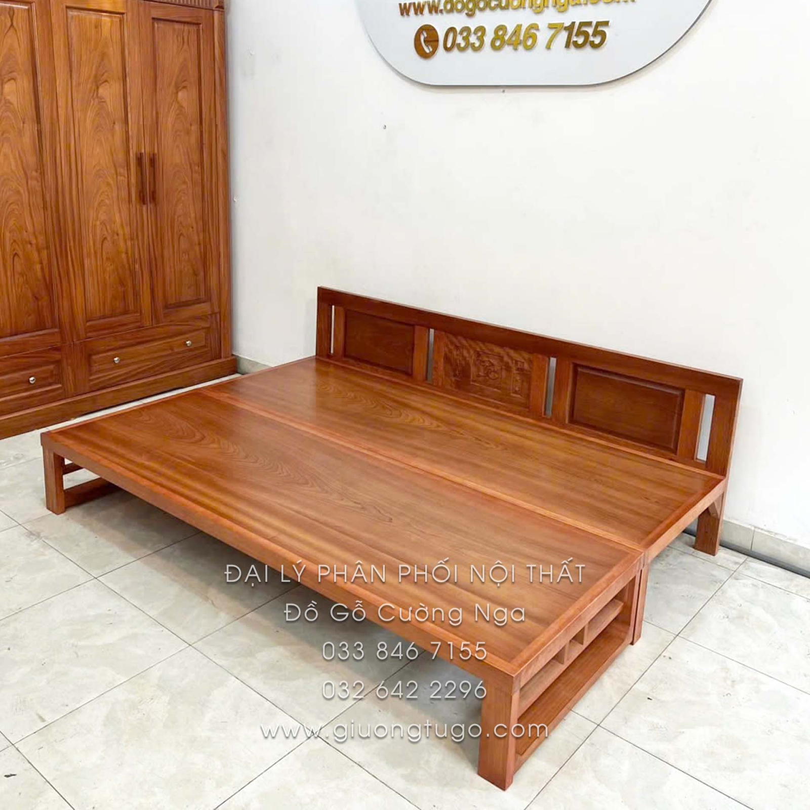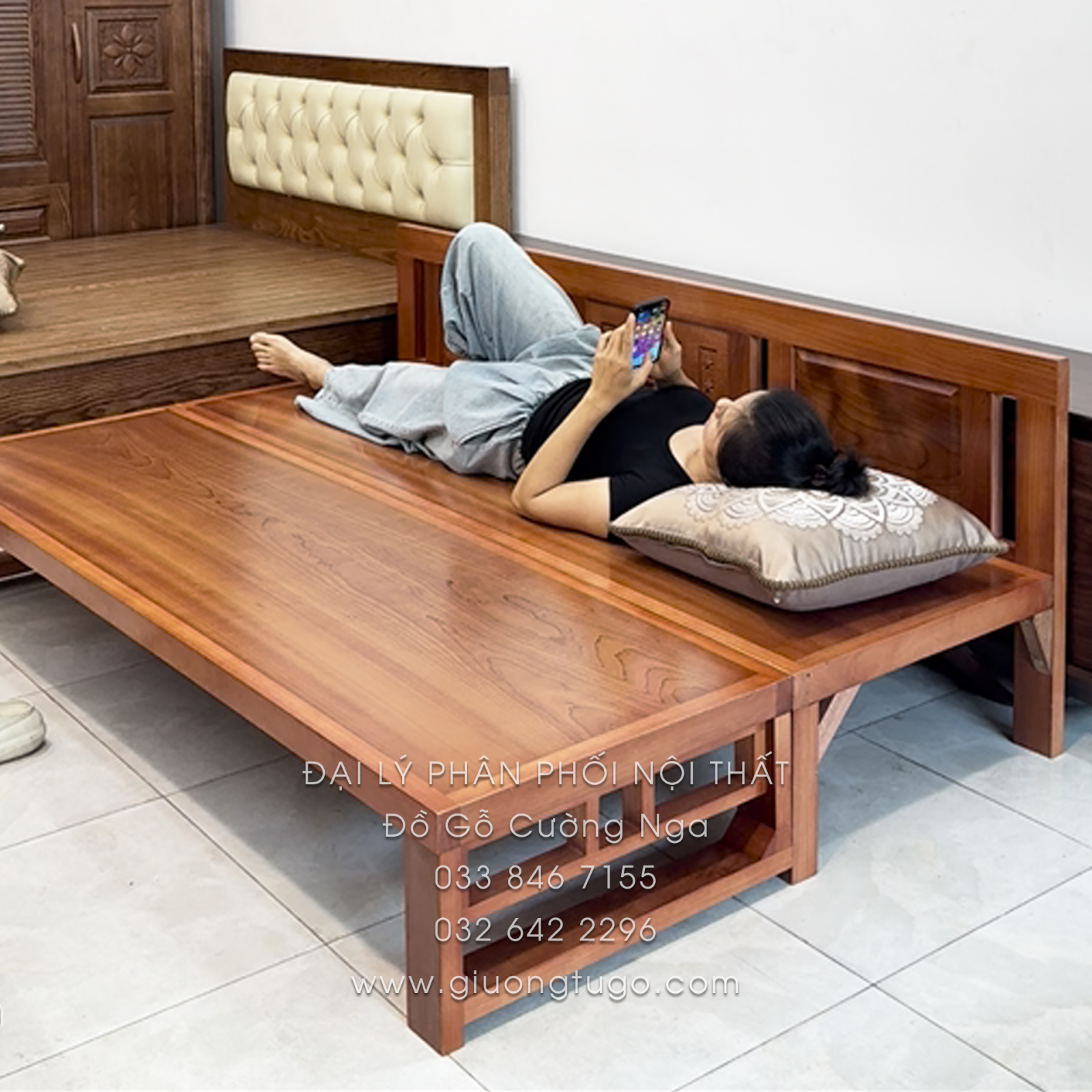 Giường Gấp: Được làm từ Gỗ Xoan Đào tự nhiên 100%. Gỗ Xoan Đào nổi tiếng với độ bền cao, khả năng chống mối mọt, cong vênh tốt và đặc biệt là vân gỗ tự nhiên sắc nét, mang lại vẻ đẹp ấm cúng, sang trọng cho không gian.