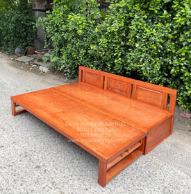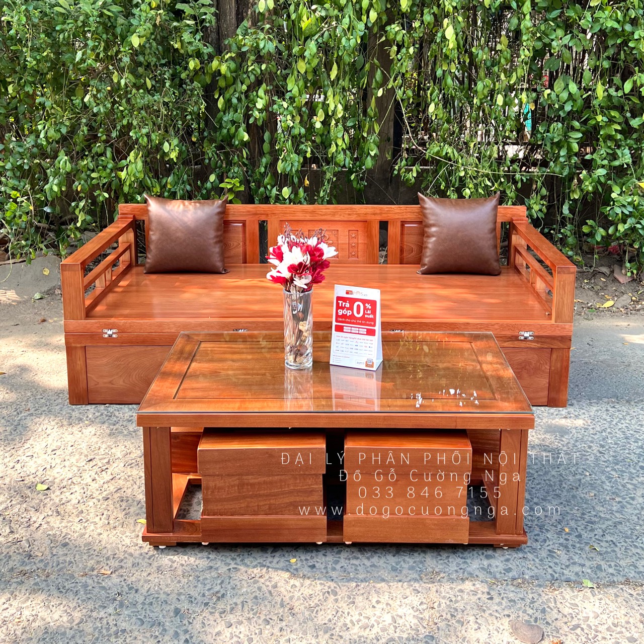 Giường Gấp Gọn Gỗ Xoan Đào Kèm Bàn Trà Sofa Và Đôn Ngồi