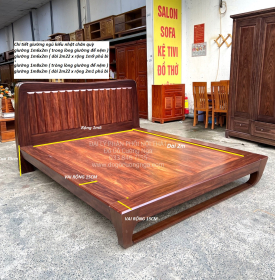 Phần đầu giường được làm gỗ tạo kiểu sang trọng - hiện đại, tôn lên dáng vẻ sang trọng, uy thế của chiếc giường. Người dùng có thể tựa lưng khi ngồi đọc sách hoặc xem phim trong phòng ngủ. Đầu giường dạng trơn, mặt gỗ liền nguyên tấm giúp những vân gỗ mộc nổi lên đẹp nhất.