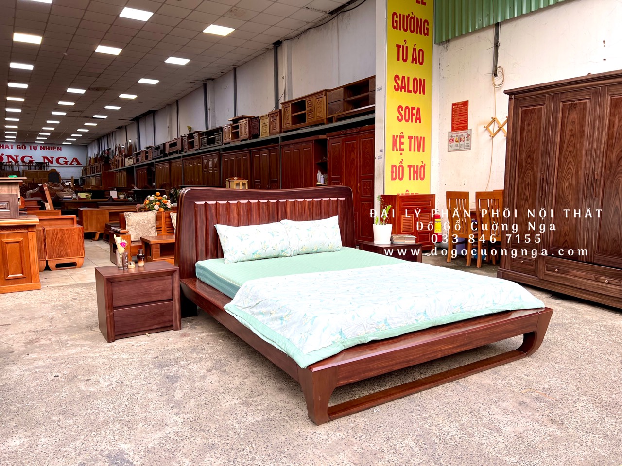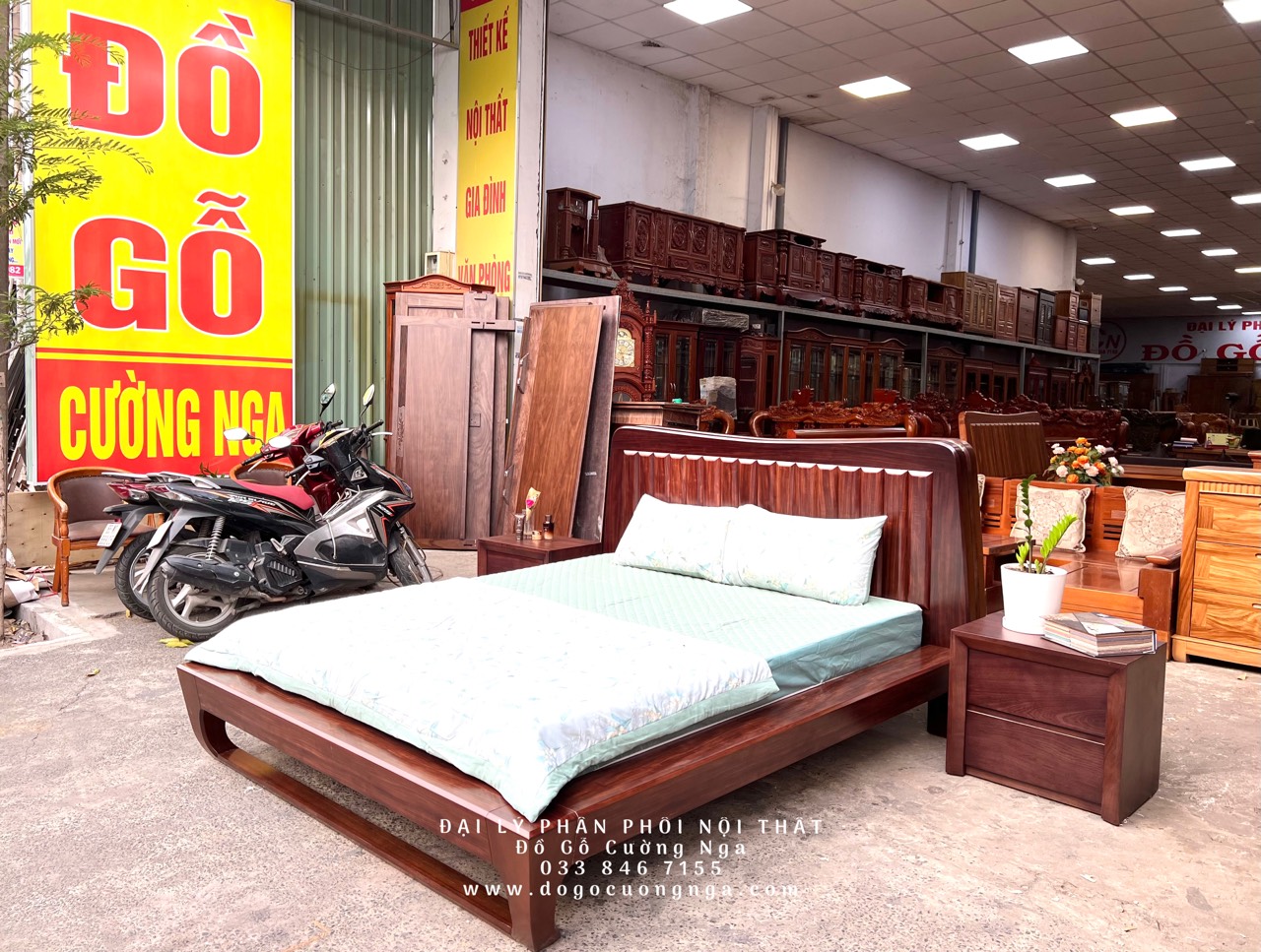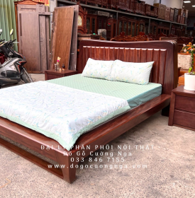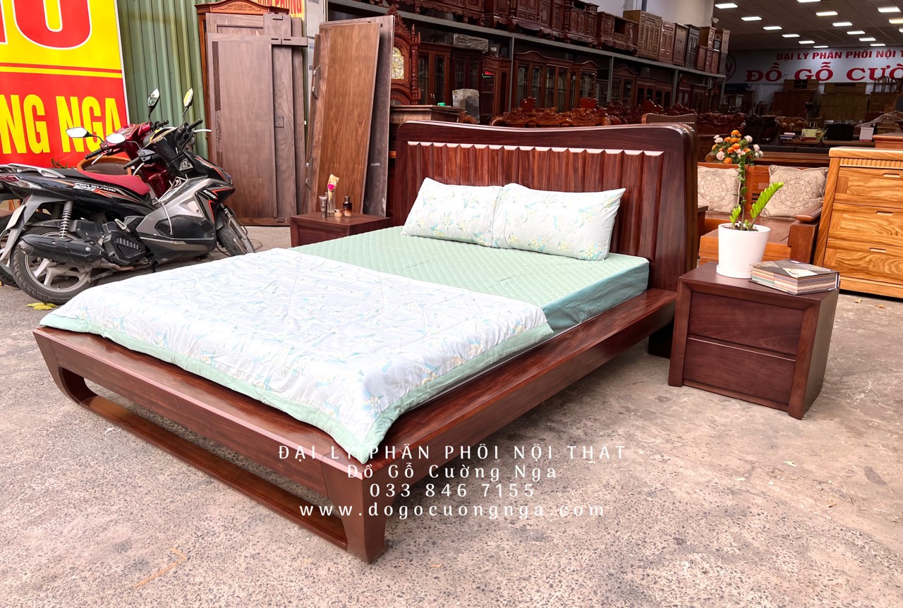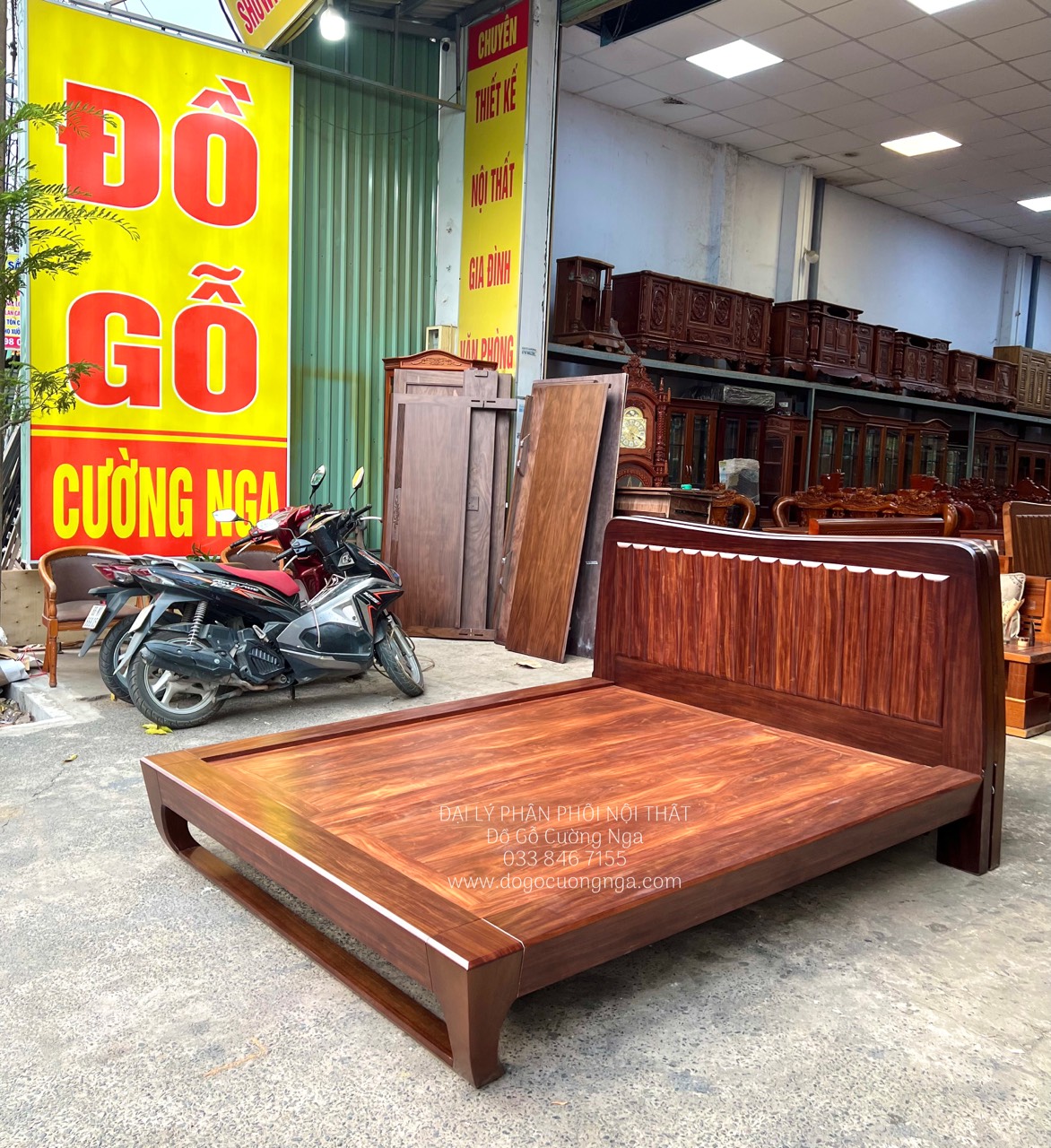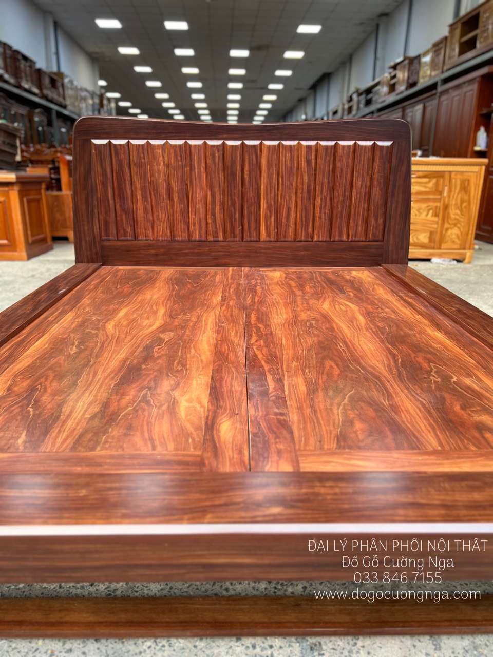 Giường gỗ cẩm kiểu hiện đại màu óc chó