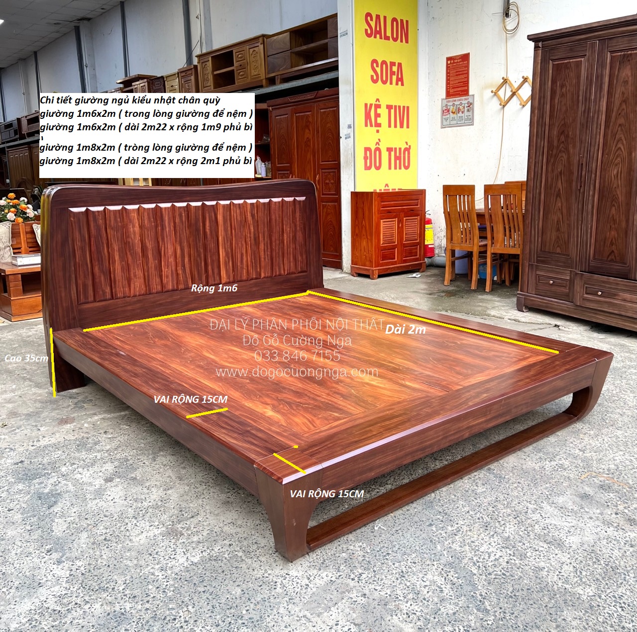 Giường Gỗ Cẩm Kiểu Nhật Màu Óc Chó Sang Trọng