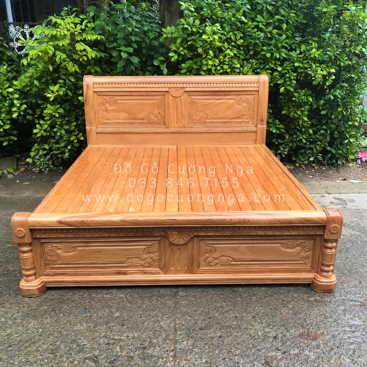 Giường gỗ gõ đỏ cao cấp - mẫu quạt vạt phản