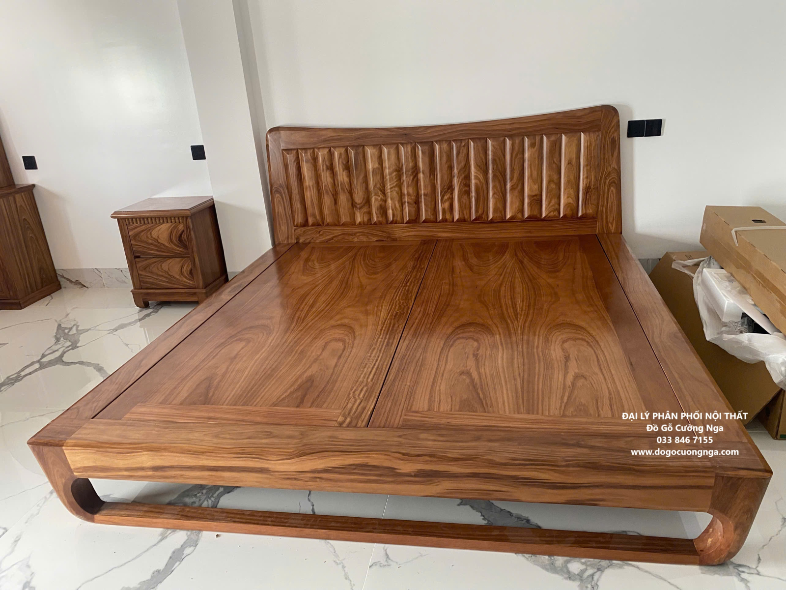 Chi tiết giường ngủ gỗ hương xám kiểu nhật